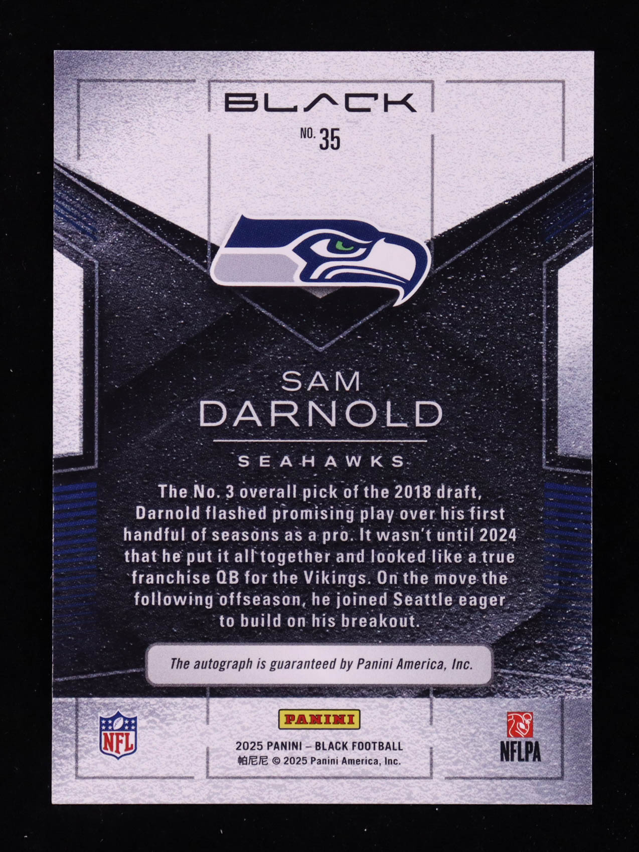 Sam Darnold 2025 Panini Black Autographs Sapphire #35 #46/50