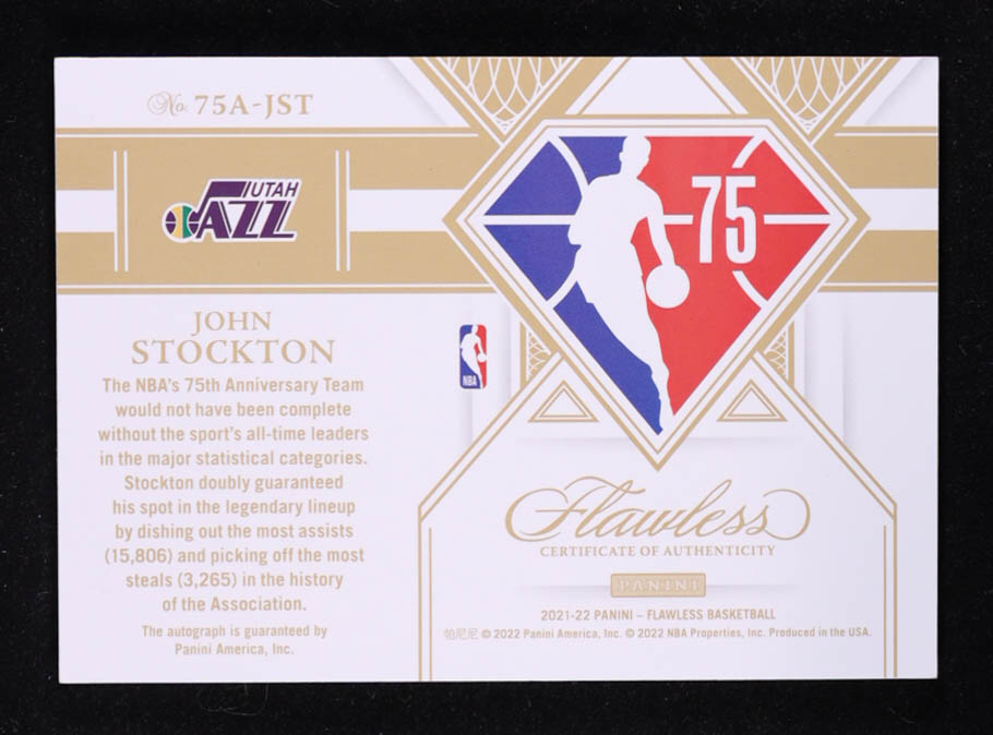 John Stockton 2021-22 Panini Flawless 75th Team Autographs #8 #02/25