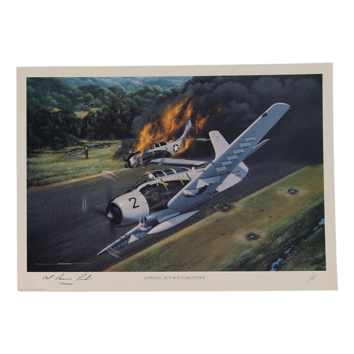 Col. Bernard Fisher Signed Stan Stokes "Downed, But Not Forgotten" Lithograph Inscribed "CMOH" (AIV)