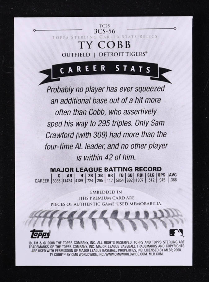 Ty Cobb 2008 Topps Sterling Career Stats Relics Triple #3CS56 #04/10