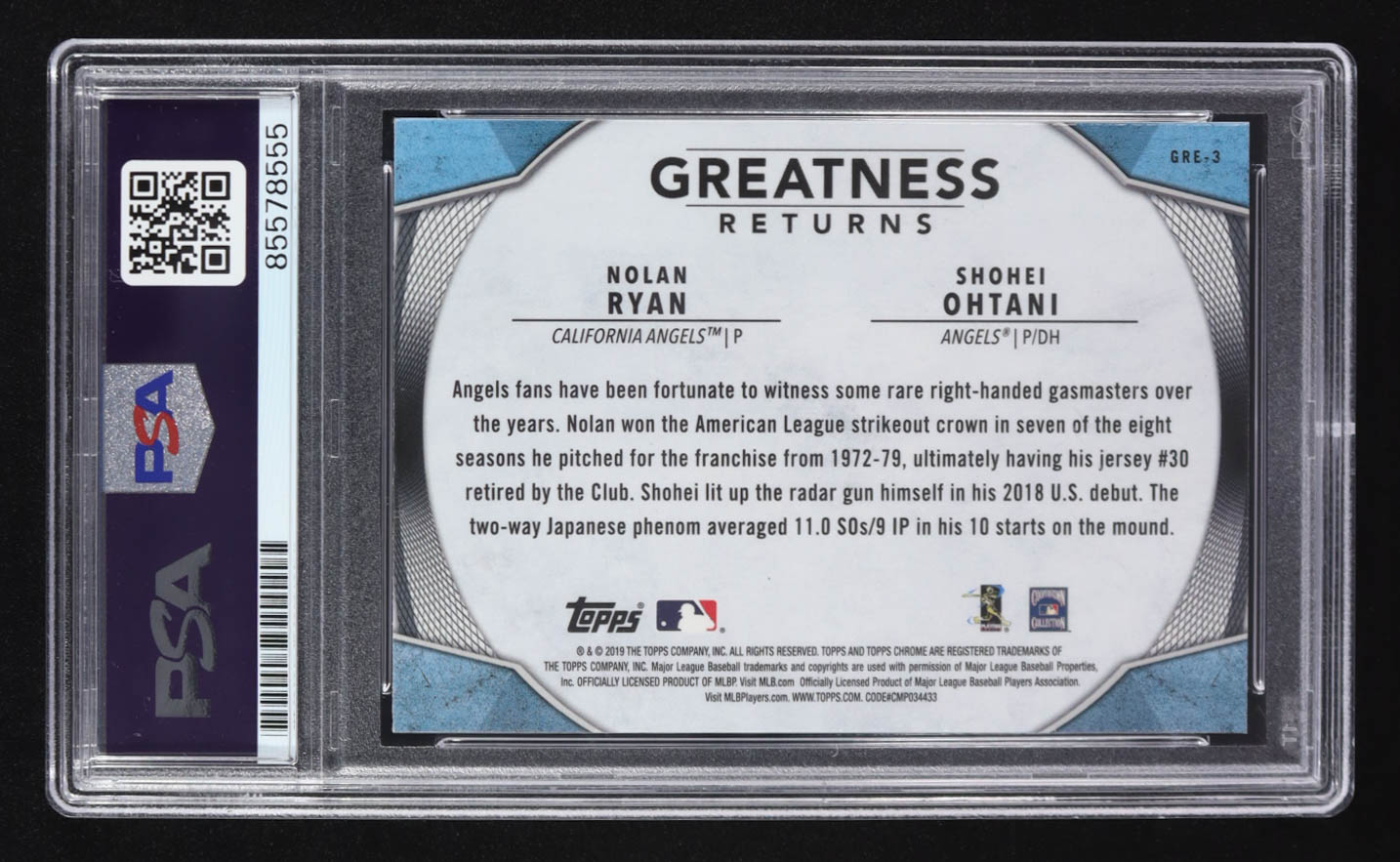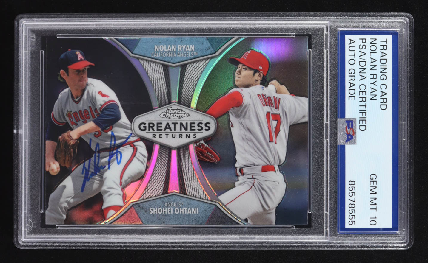 Nolan Ryan Signed 2019 Nolan Ryan with Shohei Ohtani Topps Chrome Greatness Returns #GRE-3 (PSA | Autograph Graded PSA 10)
