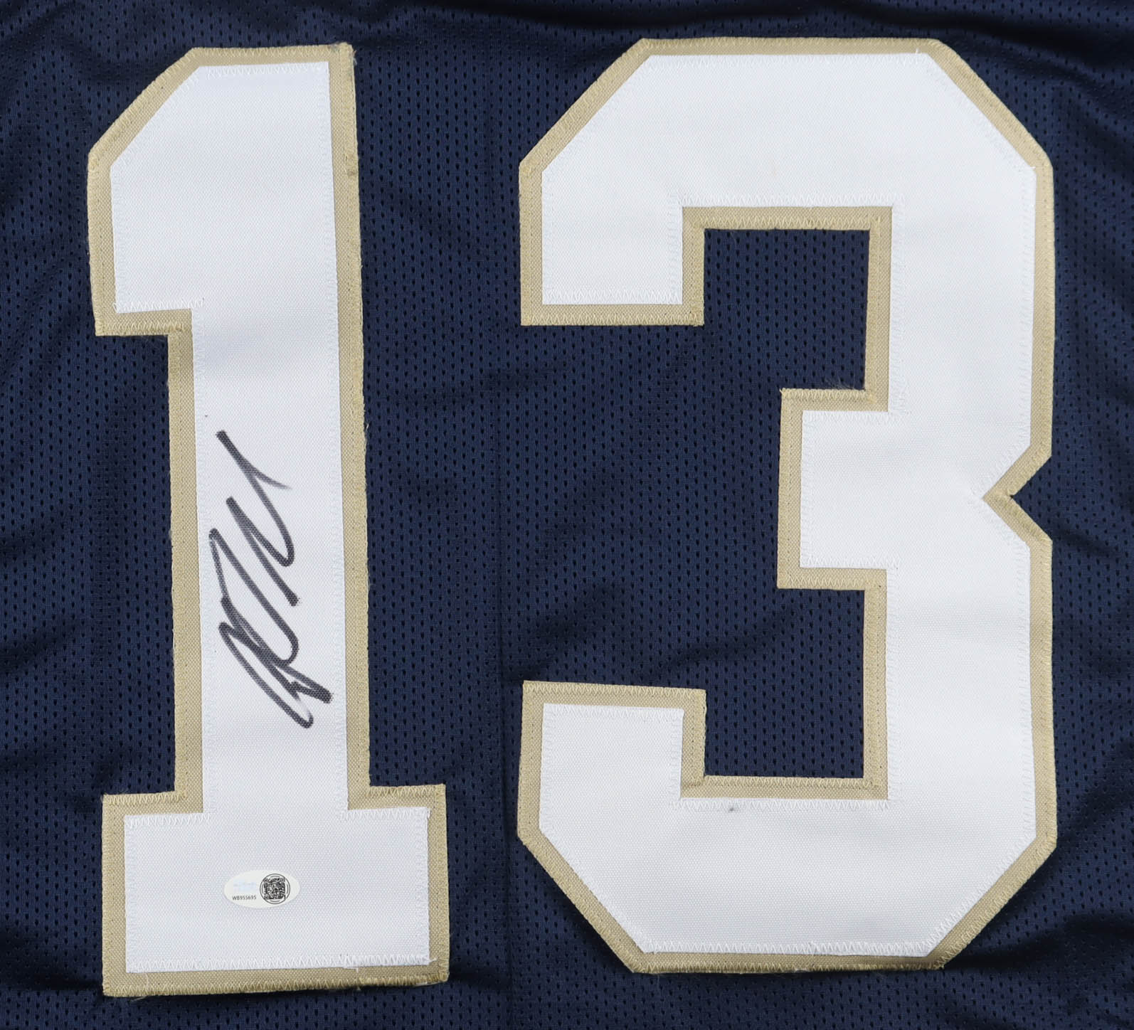 Custom jersey with everything sewn on, size XL. Hand-signed by Riley Leonard.