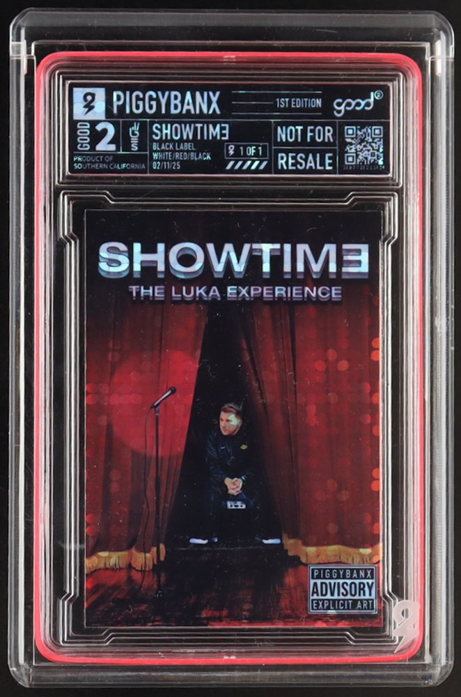 Luka Doncic PiggyBanx "SHOWTIME" Good 2 1st Edition Disco Refractor #1/1 with Display Box & PiggyBanx White Gloves
