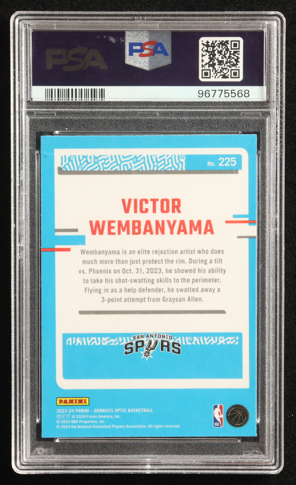 Victor Wembanyama 2023-24 Donruss Optic #225 RC (PSA 9)