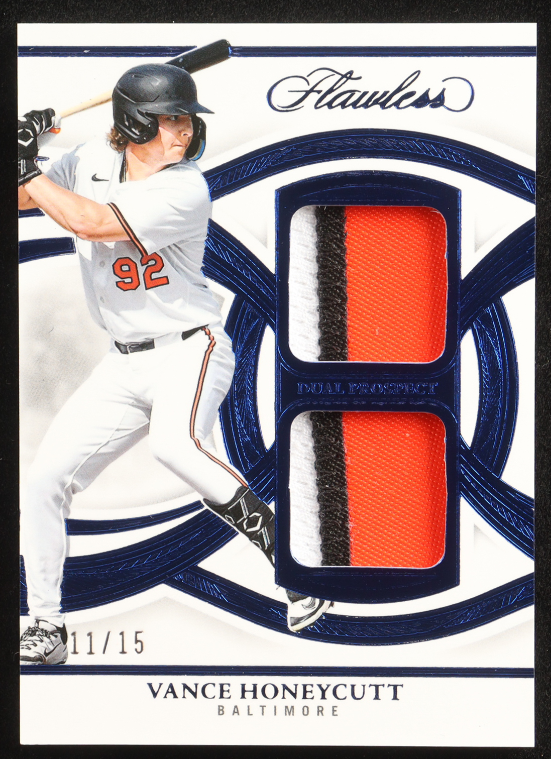 Vance Honeycutt 2025 Panini Flawless Dual Prospect Patches Sapphire #29 #11/15 RC