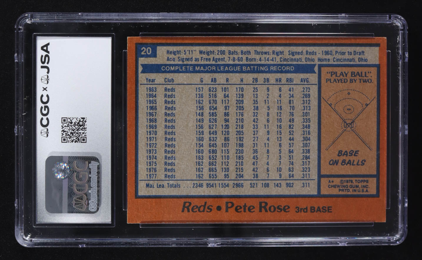 Pete Rose Signed 1978 Topps #20 (CGC | Autograph Graded CGC 7)