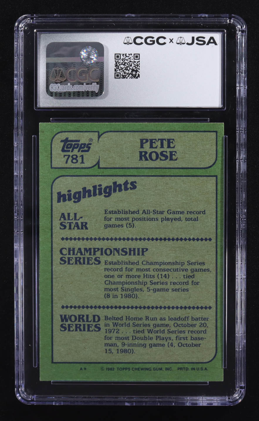 Pete Rose Signed 1982 Topps In Action #781 (CGC)