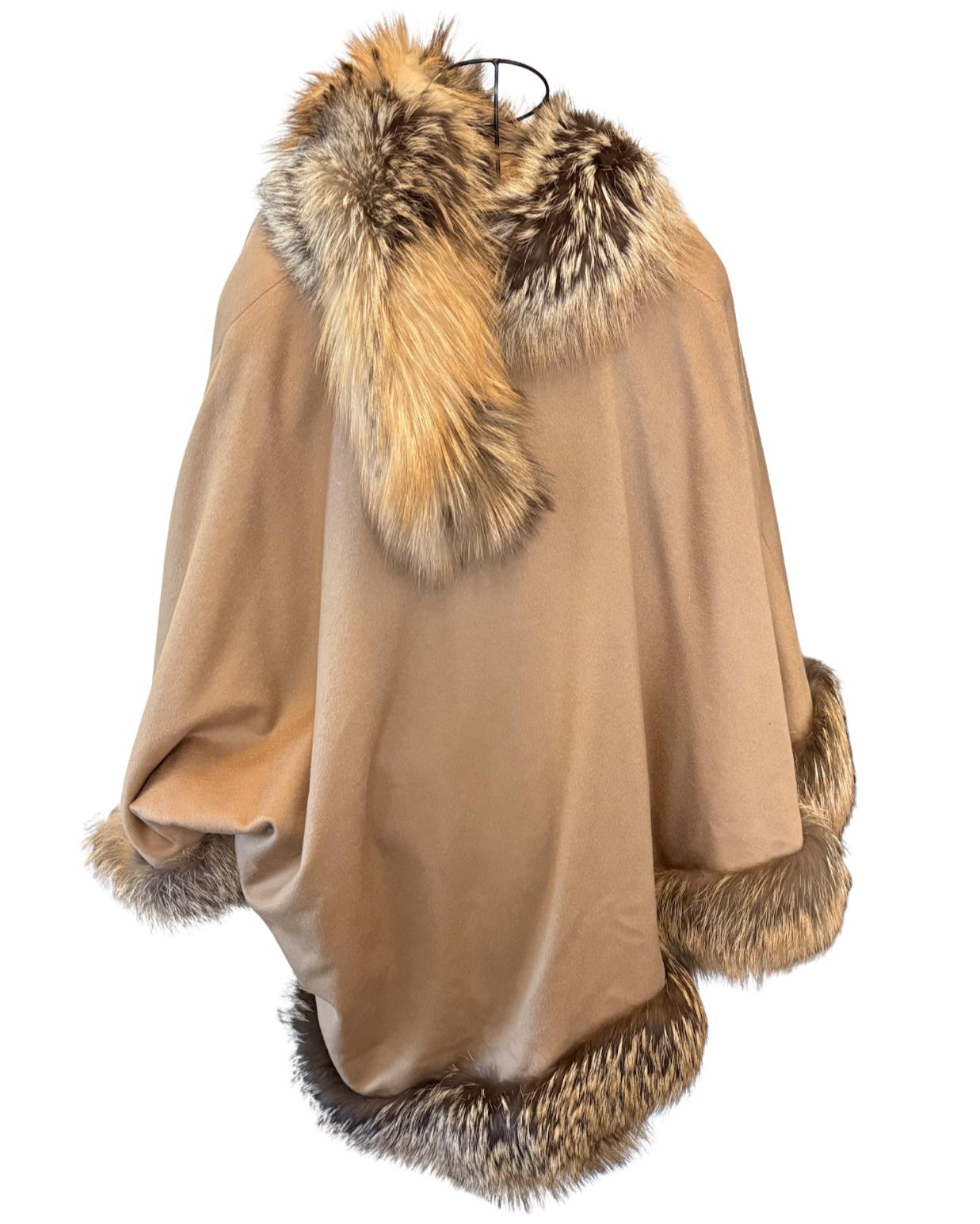 Silk-Lined Cashmere Cape with Fox Fur Trim - Betty Jane France Collection