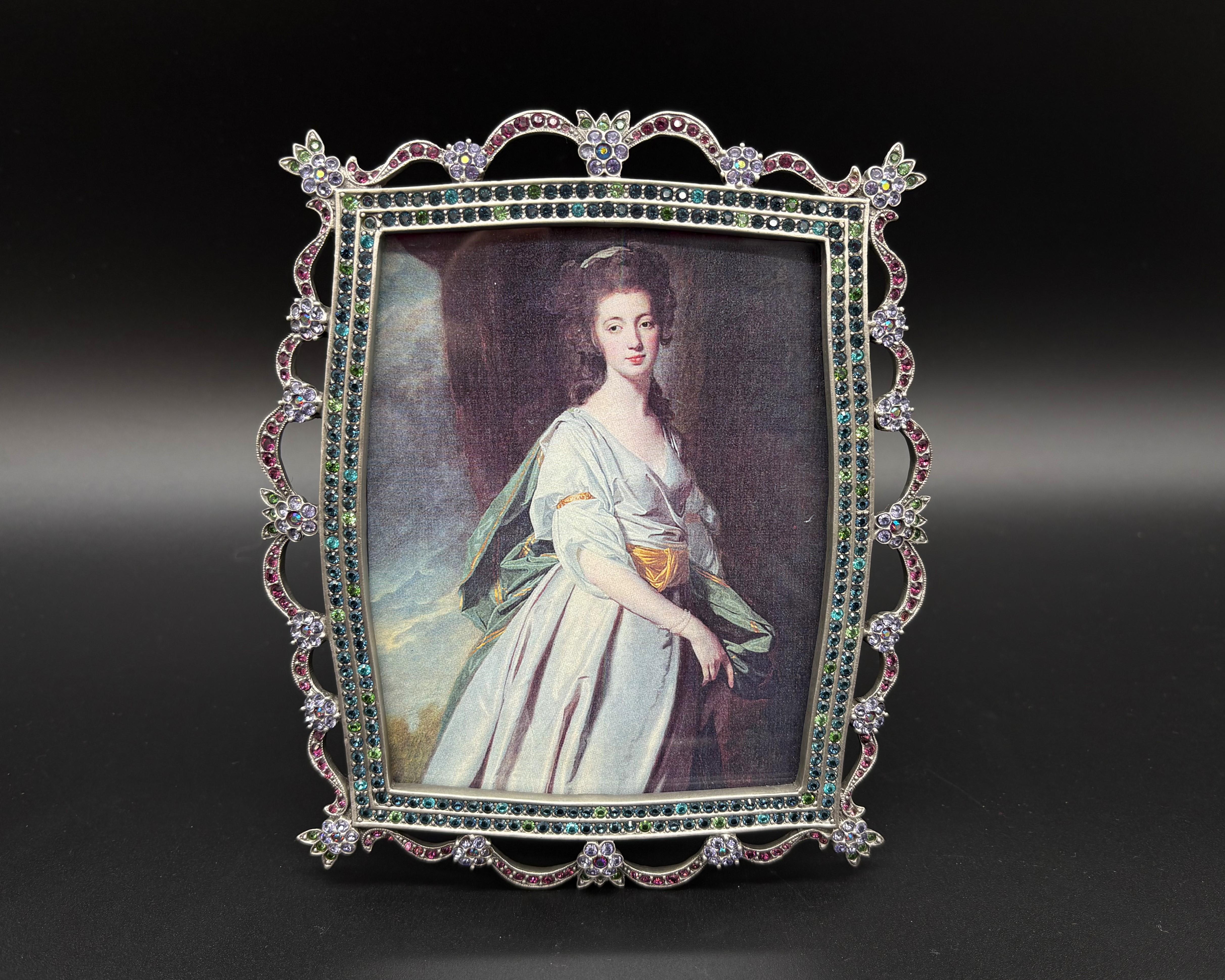 This Jay Strongwater Elizabeth Tiara Picture Frame is a breathtaking display of elegance and craftsmanship. Featuring an intricate tiara-inspired design with Swarovski crystals and hand-enameled details, this frame adds a touch of luxury to any space. Perfect for showcasing your most cherished photos, it's a stunning piece that embodies the timeless beauty and artistry of Jay Strongwater. From the Collection of Betty Jane France, founder of The NASCAR Foundation.