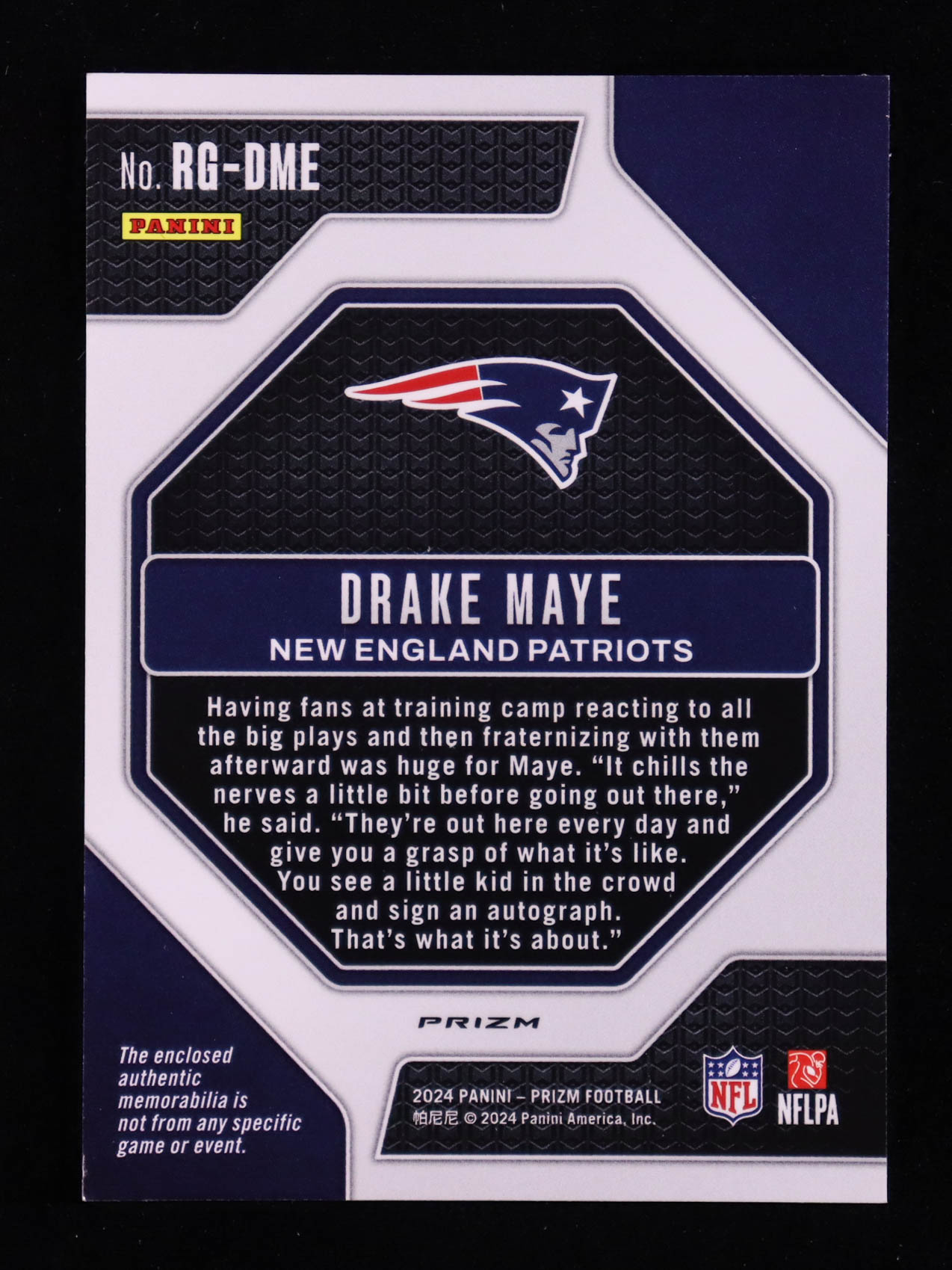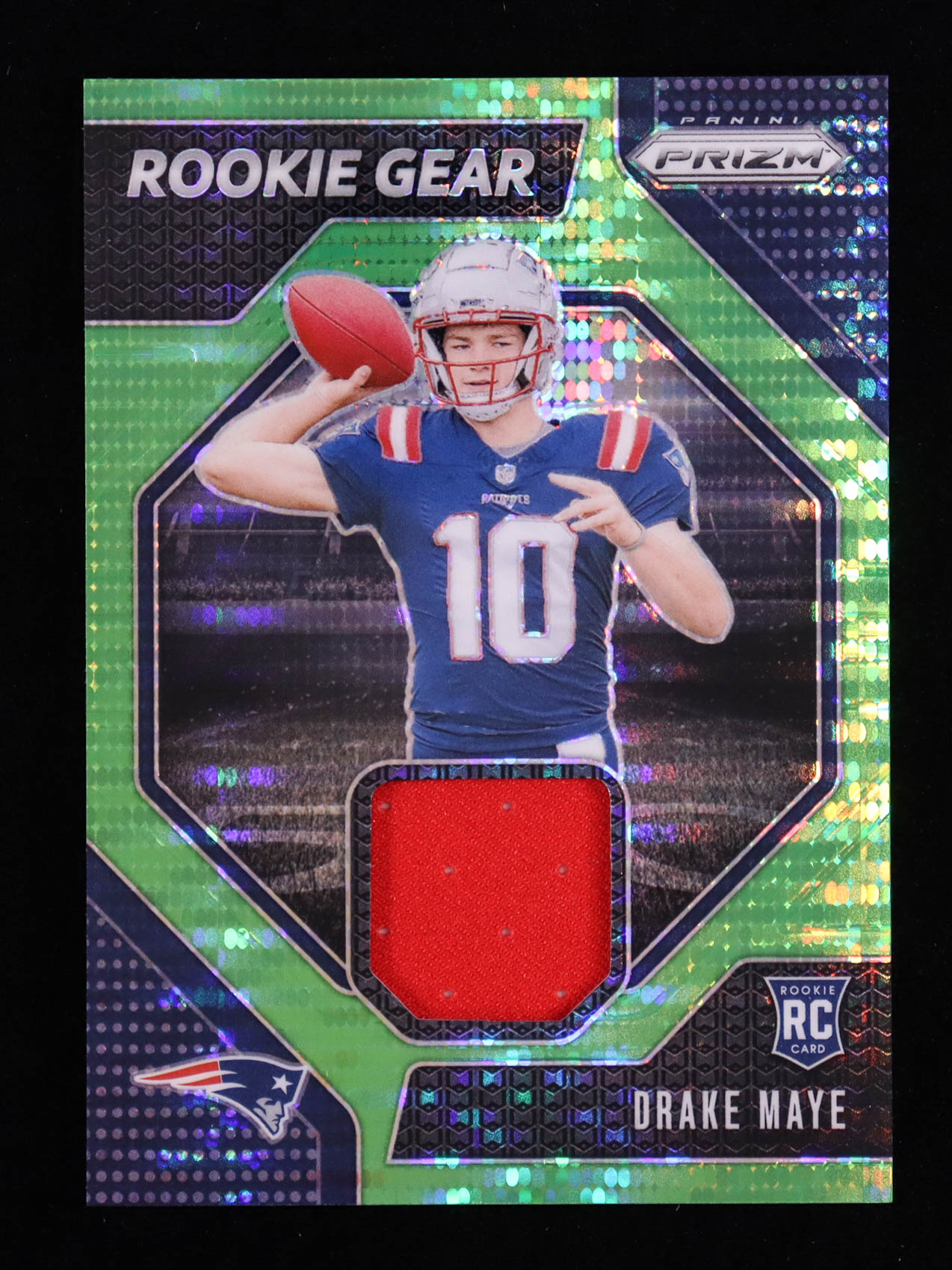 Drake Maye 2024 Panini Prizm Rookie Gear Neon Green Pulsar Prizm #6 RC
