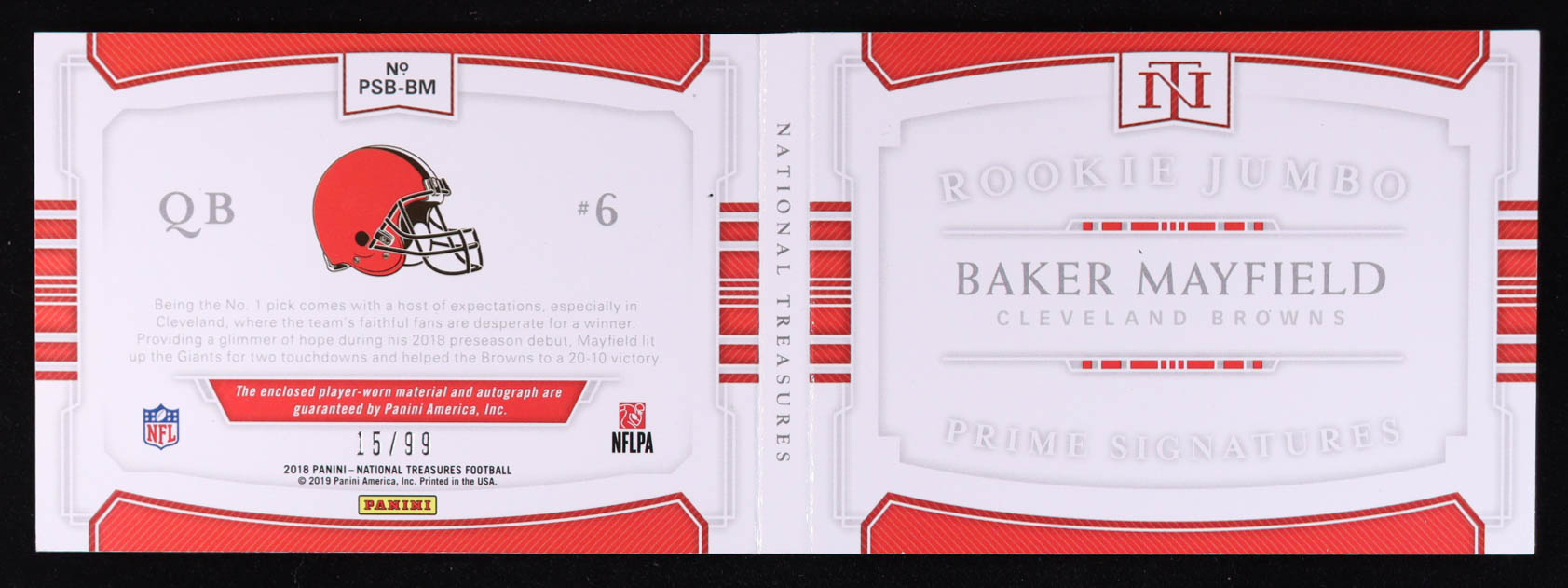 Baker Mayfield 2018 Panini National Treasures Rookie Jumbo Prime Signatures Booklet #1 #15/99 RC