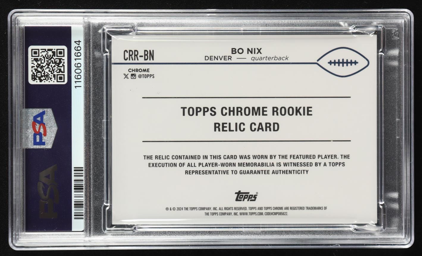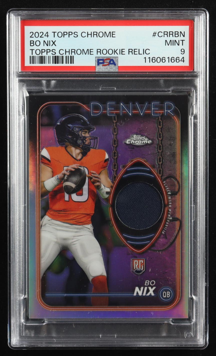 Bo Nix 2024 Topps Chrome Rookie Relics #CRRBN RC (PSA 9)