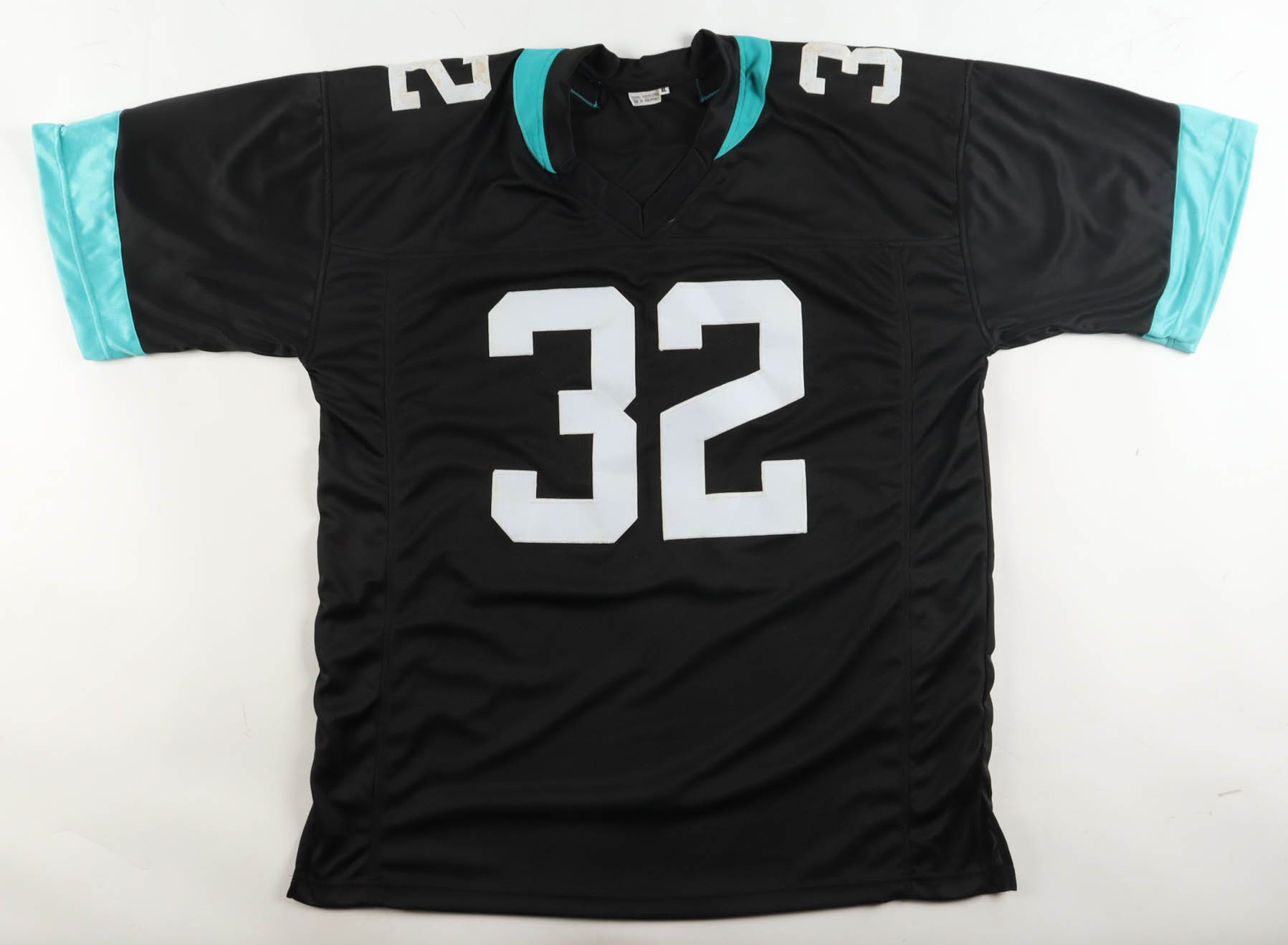 Custom jersey with everything sewn on, size XL. Hand-signed by Maurice Jones-Drew. Please note, there is staining throughout the reverse number.