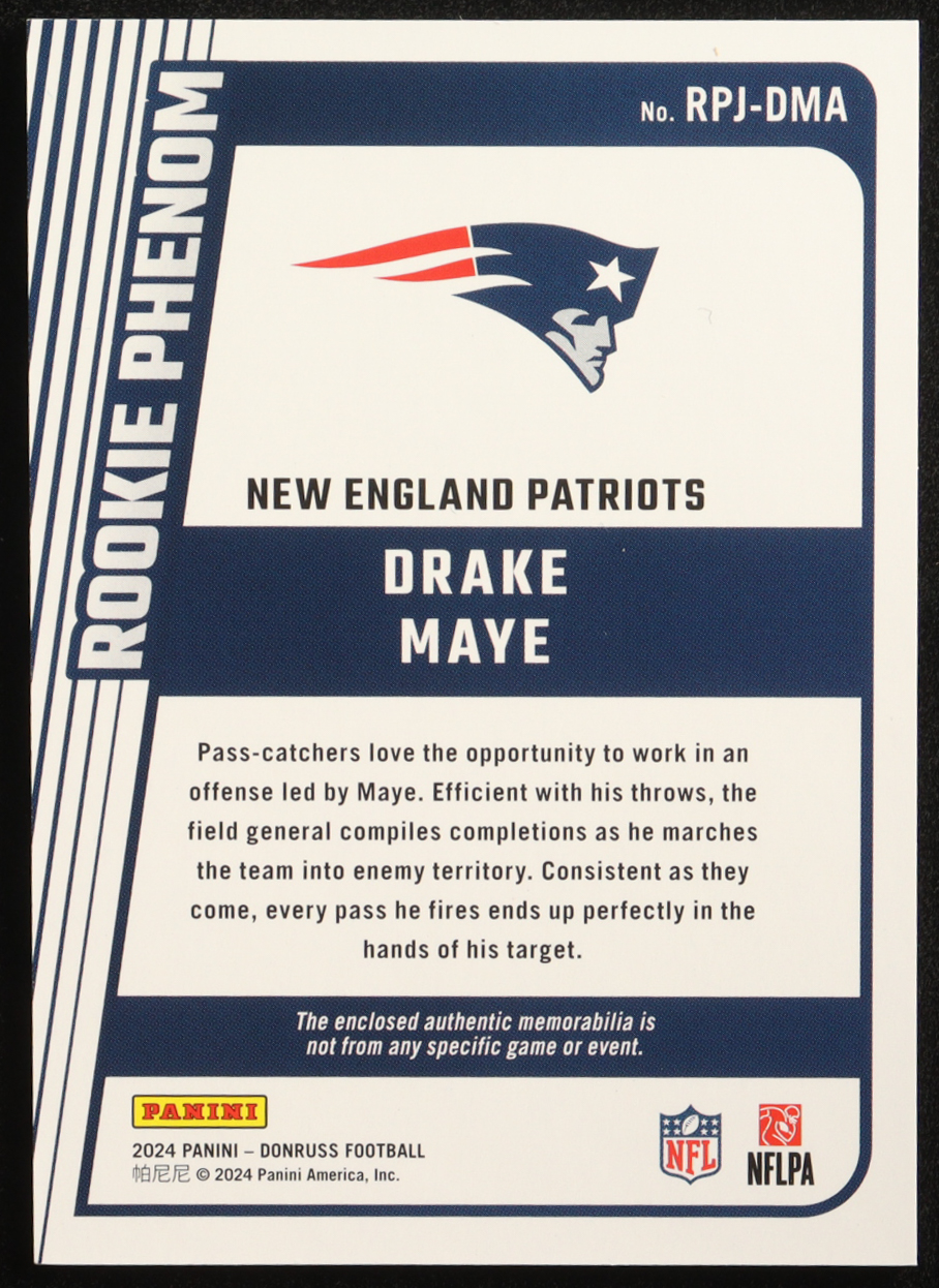 Drake Maye 2024 Donruss Rookie Phenom Jerseys #25 RC