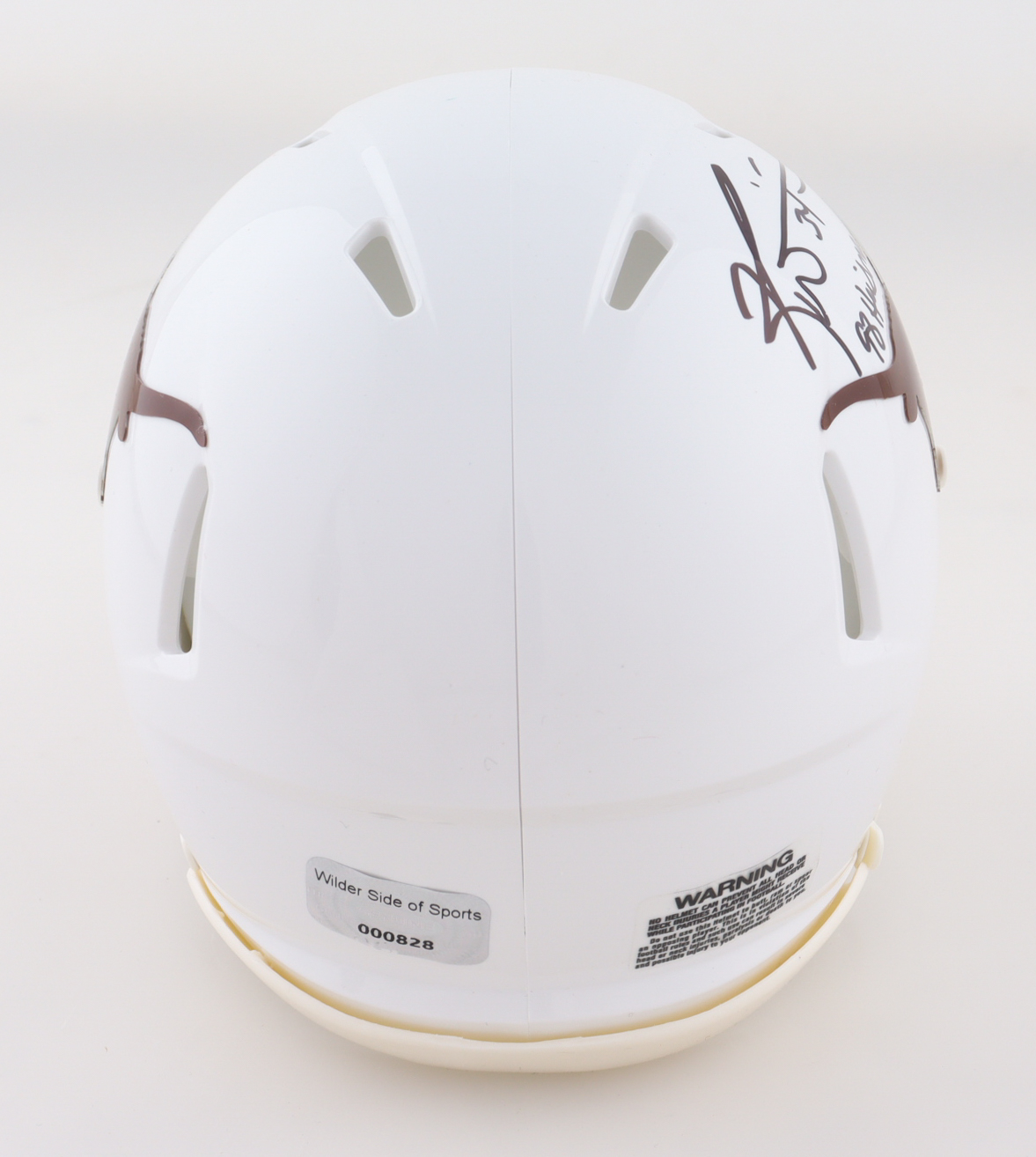 Riddell Texas Longhorns Speed Mini Helmet has been hand-signed and inscribed by Ricky Williams.
