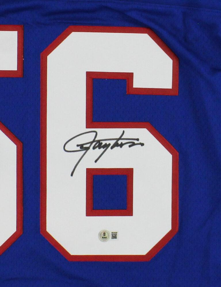 Mitchell & Ness jersey with everything pressed on, size XL. Hand-signed by Lawrence Taylor (New York Giants, HOF).