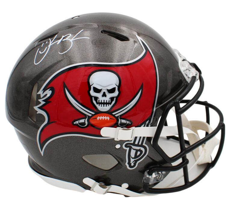 Riddell Tampa Bay Buccaneers full-size authentic on-field speed helmet has been hand-signed by Derrick Brooks.