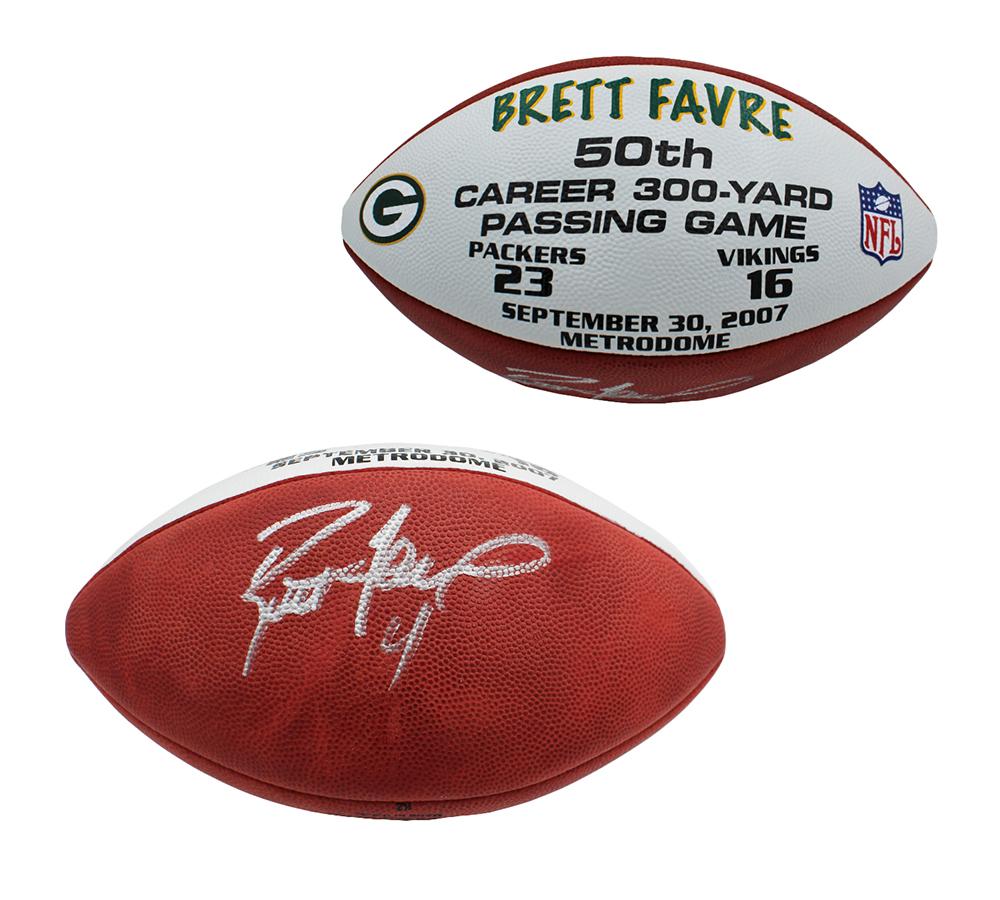 Brett Favre Signed Packers 50th Career 300-Yard Passing Game Commemorative NFL Football (Radtke)