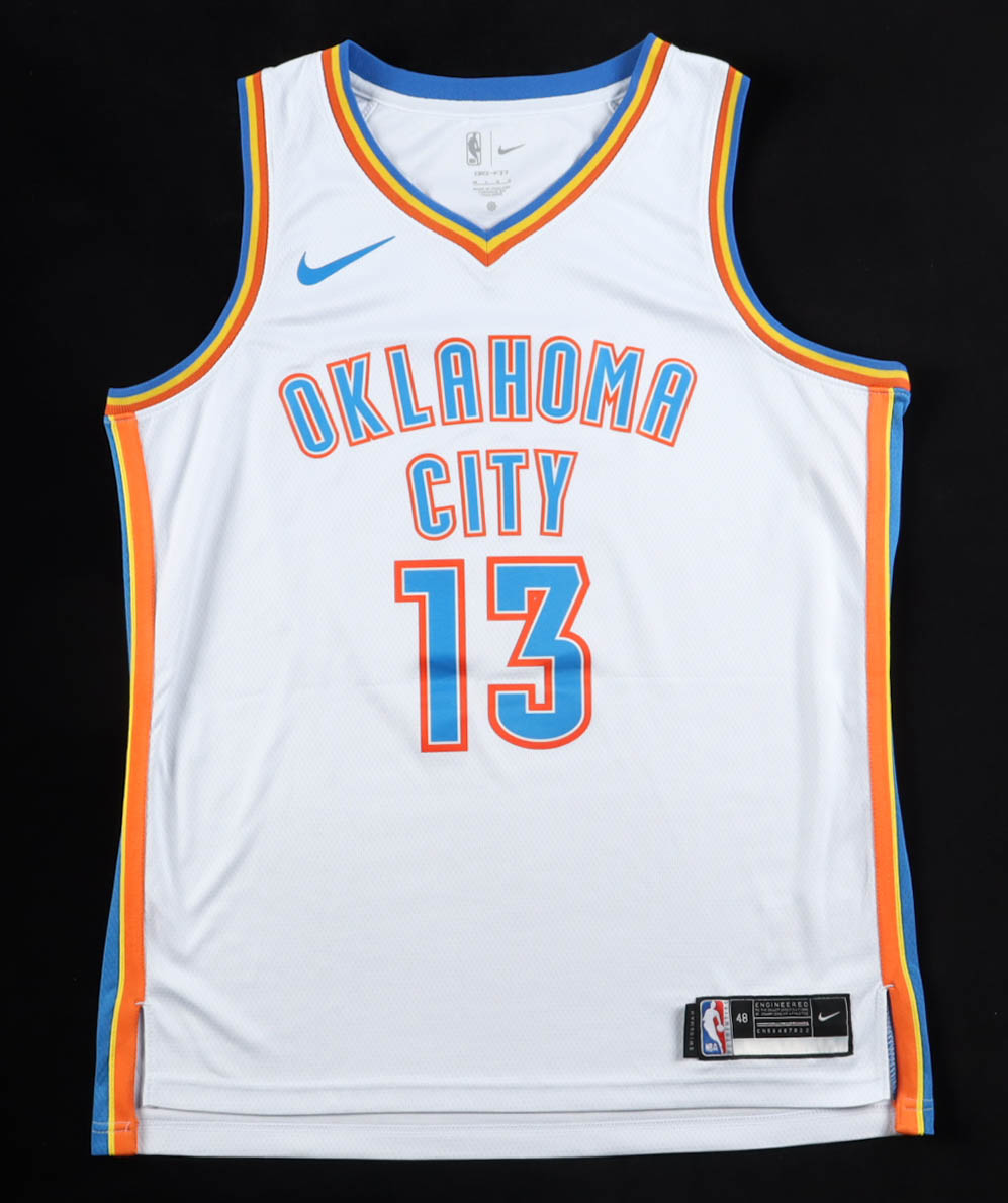 Nike jersey. Everything is pressed on, size 48. Hand-signed by Ousmane Dieng (Oklahoma City Thunder). Please note, there is a stain on the back of the jersey.