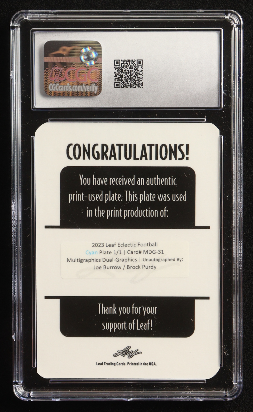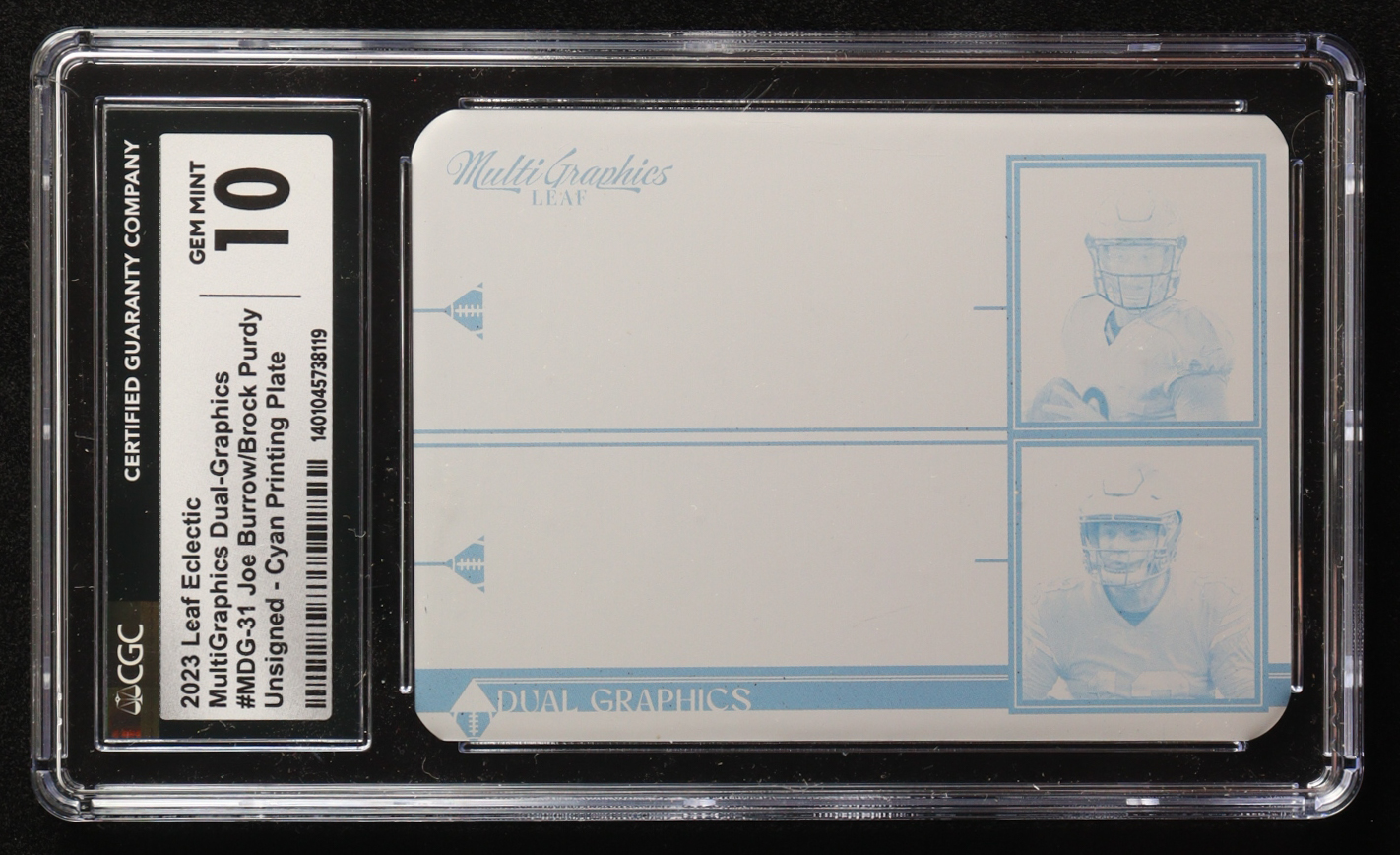 Joe Burrow / Brock Purdy 2023 Leaf Eclectic Multigraphics Dual Graphics Unsigned Printing Plates Cyan #MDG31 #1/1 (CGC 10)