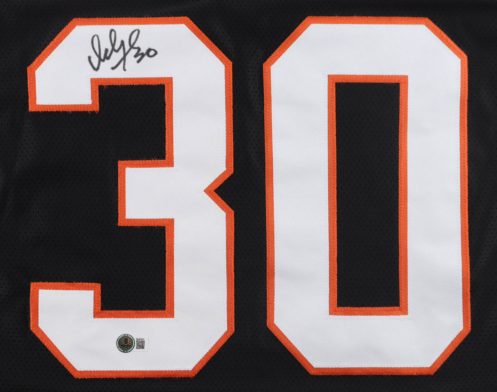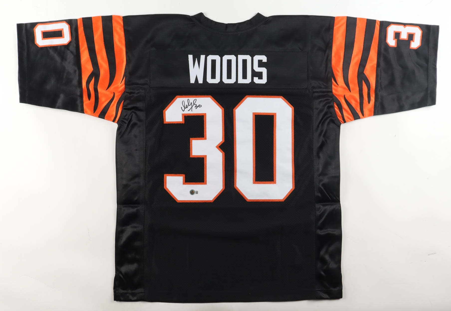 Custom jersey. Everything sewn on, size XL. Hand-signed by Ickey Woods.