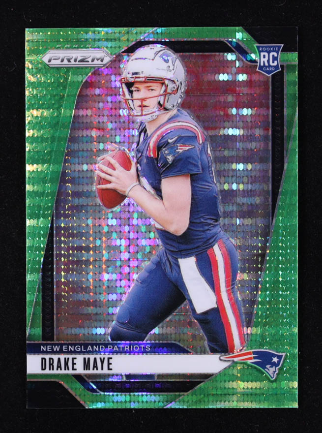 Drake Maye 2024 Panini Prizm Prizms Neon Green Pulsar #329 RC