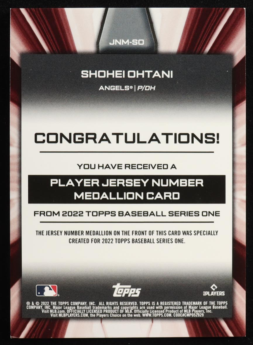 Shohei Ohtani 2022 Topps Commemorative Player Jersey Number Medallions #JNMSO