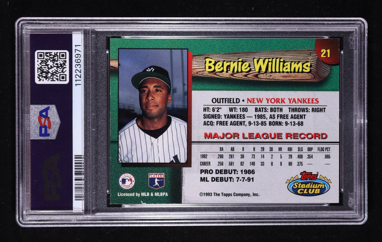 Bernie Williams Signed 1993 Yankees Stadium Club #21 Inscribed "SDG" (PSA 6)