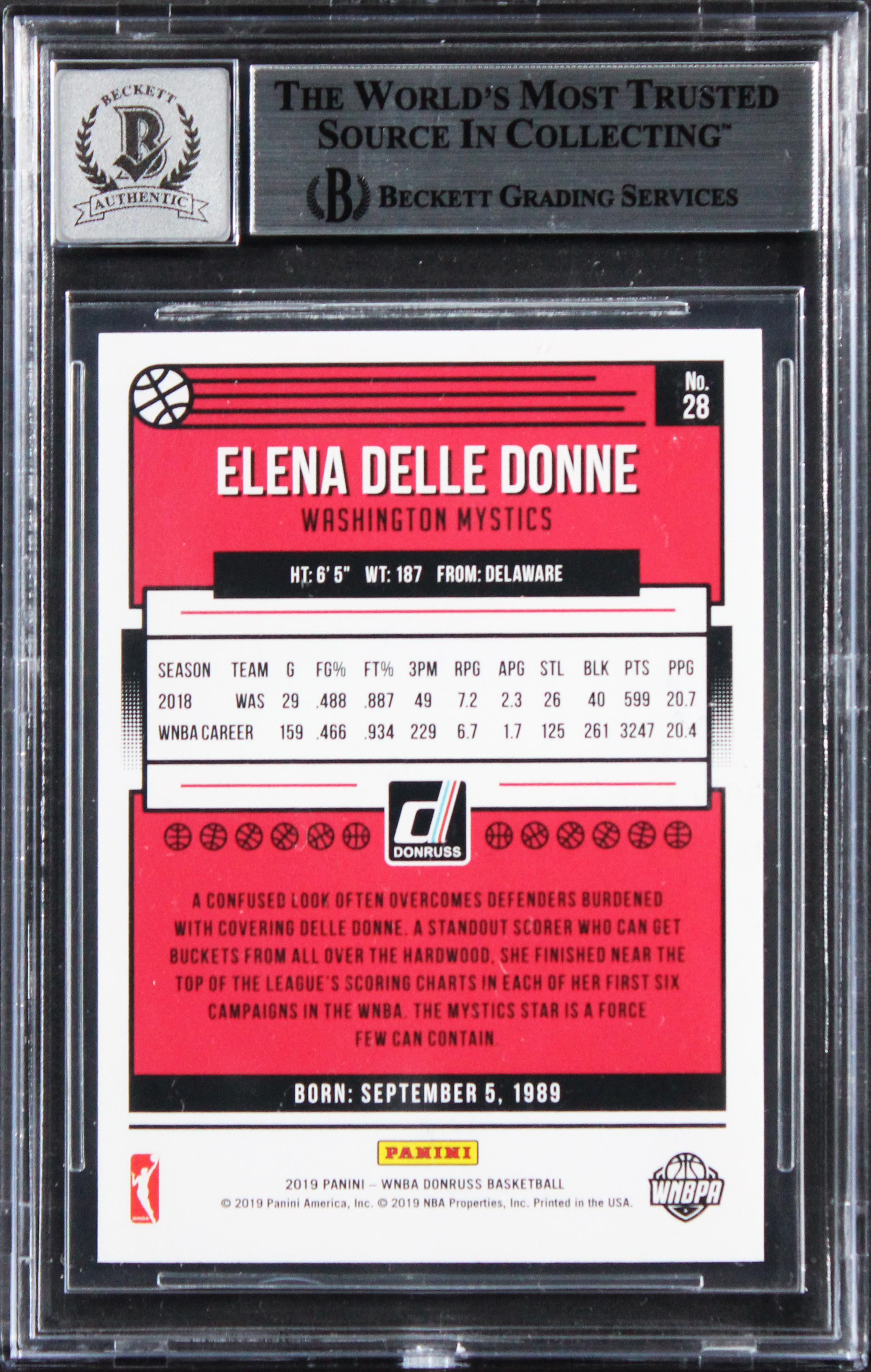 Elena Delle Donne Signed 2019 Donruss #28 Card (BGS | Auto Grade 10)