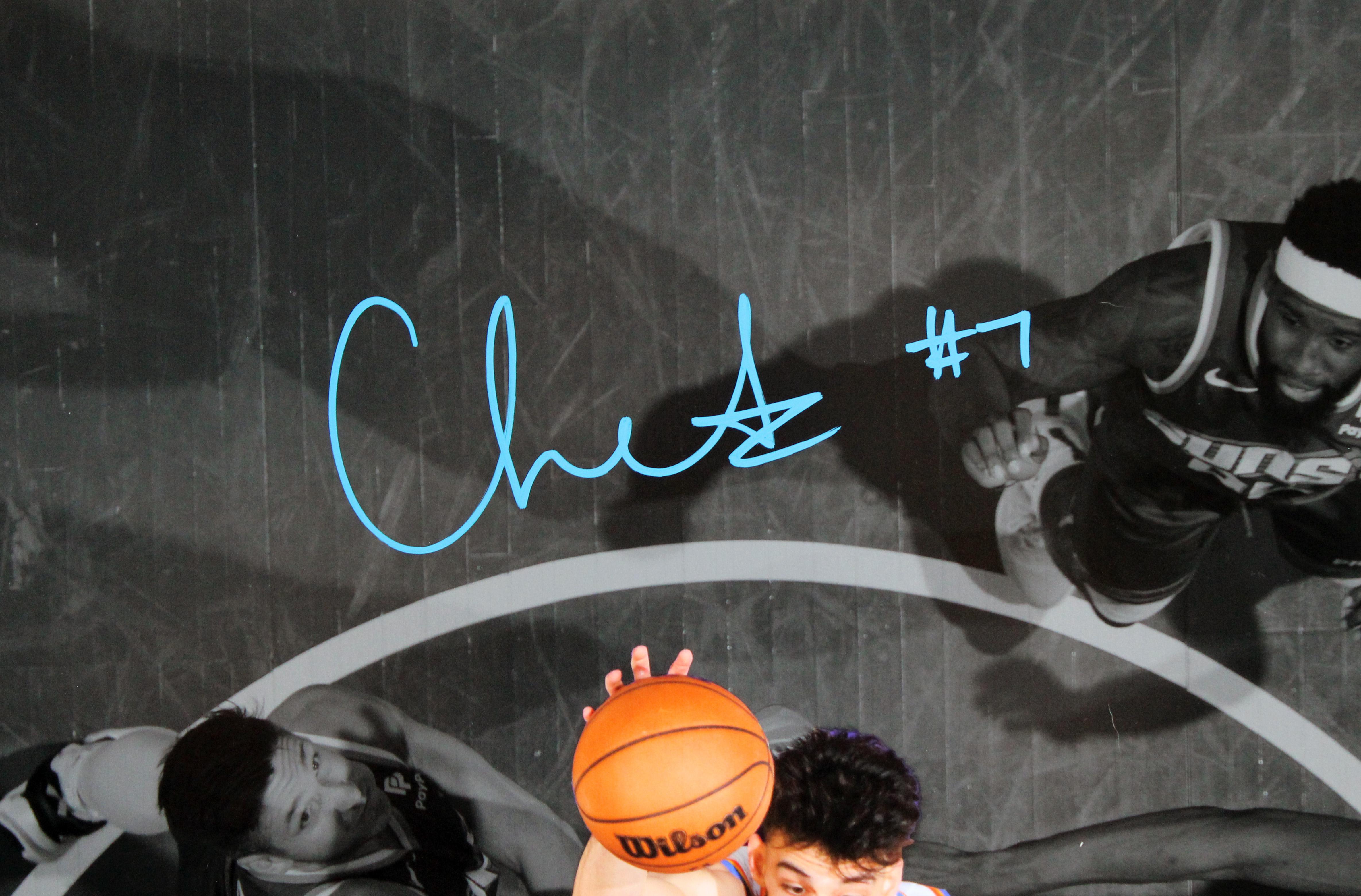 Photo measures approximately 16" x 20" in size and has been hand-signed by Chet Holmgren (Oklahoma City Thunder).