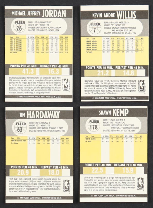 1990-1991 Fleer Basketball Complete Set of (198) Cards Including Michael Jordan #26, Kevin Willis #7, Tim Hardaway #63, Shawn Kemp #178