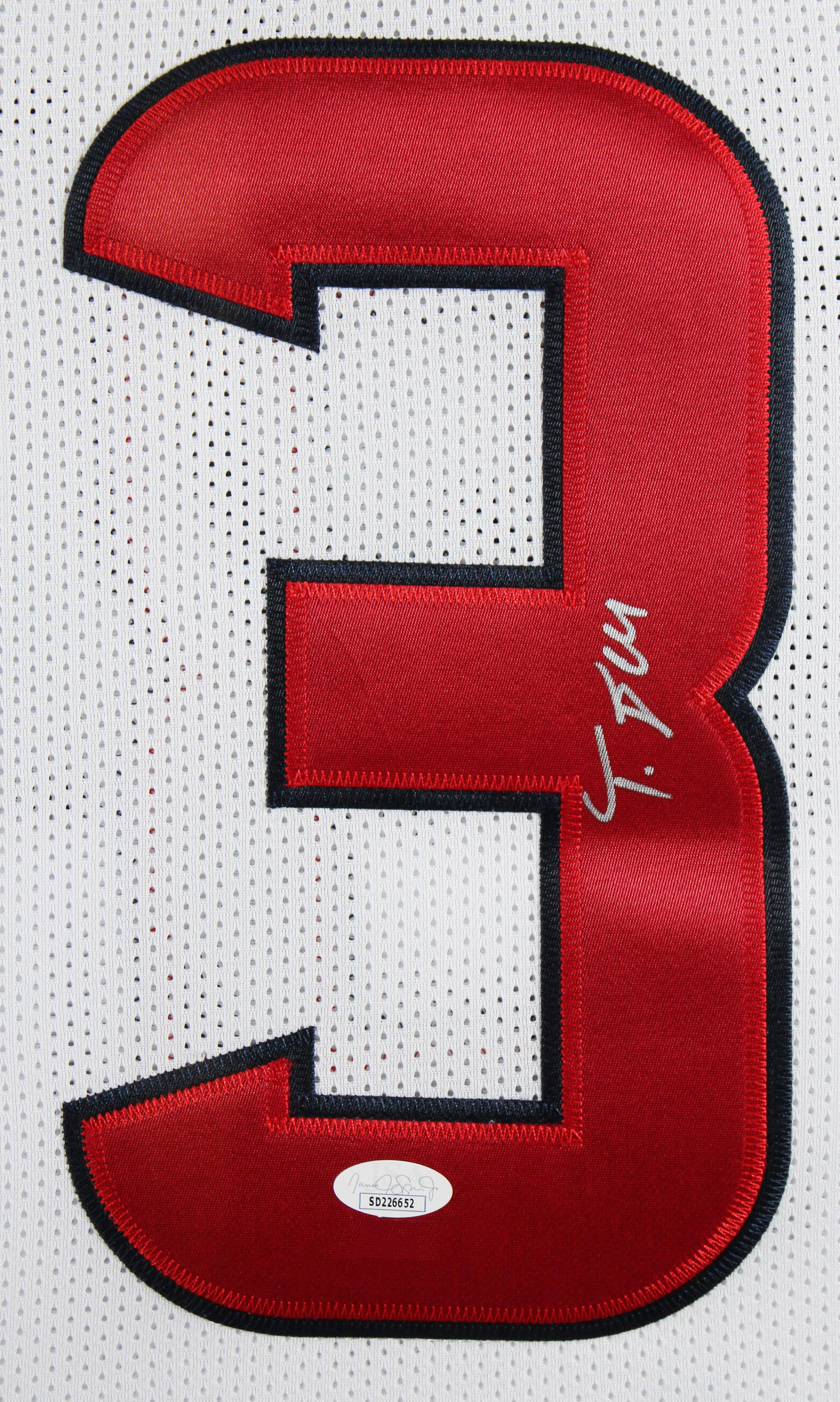 Custom framed display measures approximately 32" x 37” in size and features a jersey that has been hand-signed by Tank Dell (Houston Texans).
