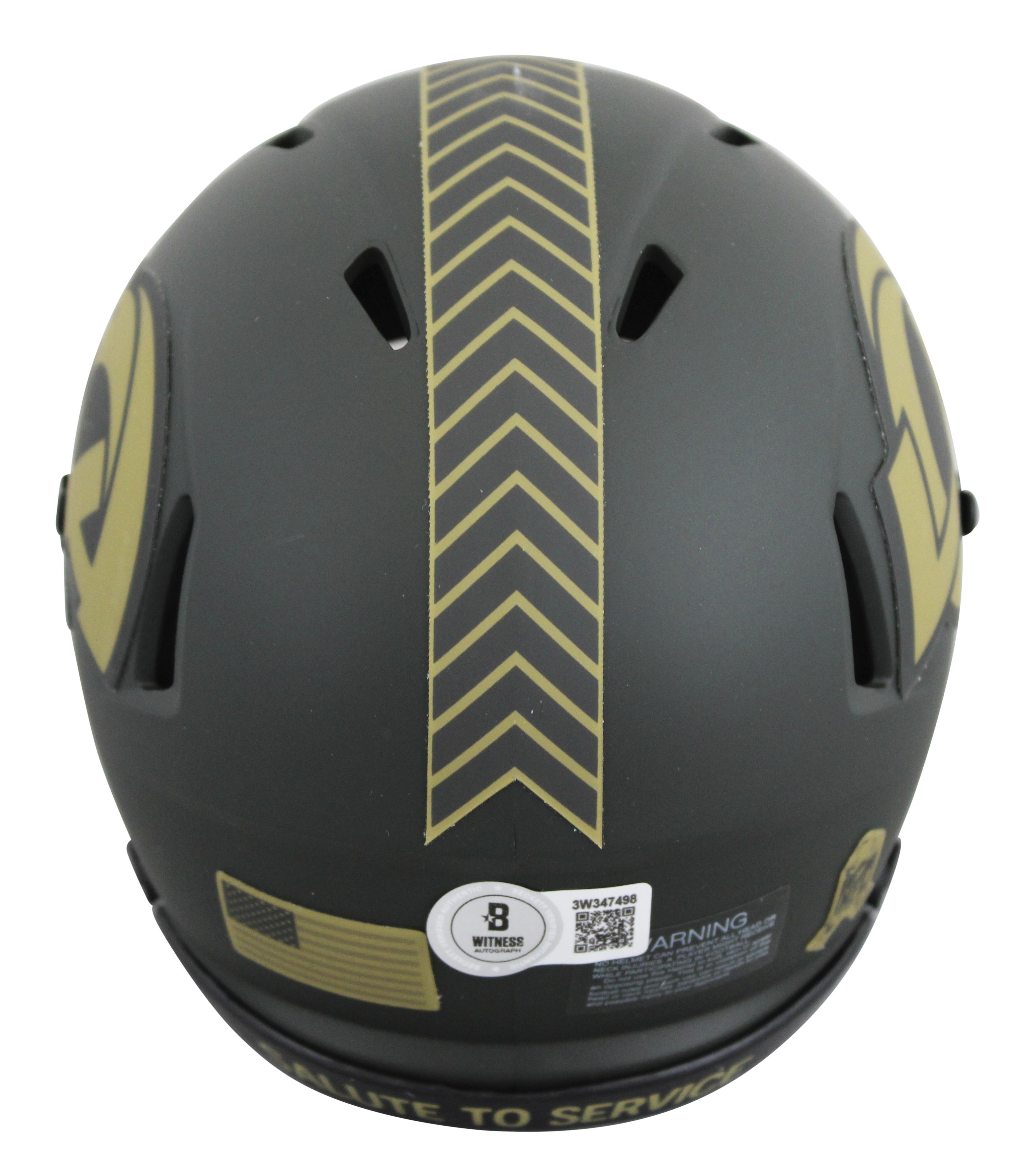 Marshall Faulk Signed Rams Salute to Service Alternate Speed Mini Helmet with Display Case (Beckett)