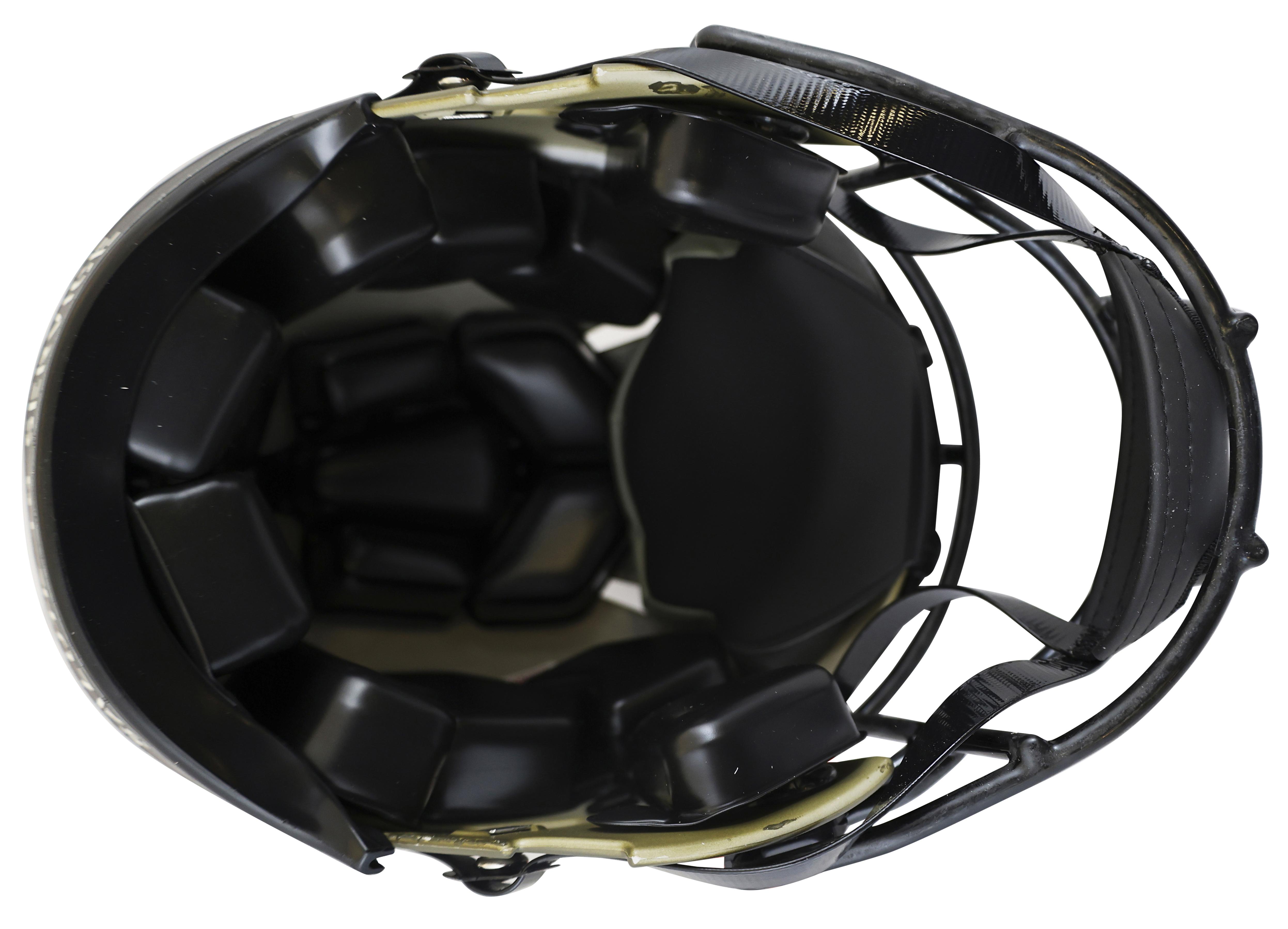Riddell Pittsburgh Steelers full-size authentic on-field salute to service alternate speed helmet has been hand-signed and inscribed by Rod Woodson (HOF). Display case is included as shown.
