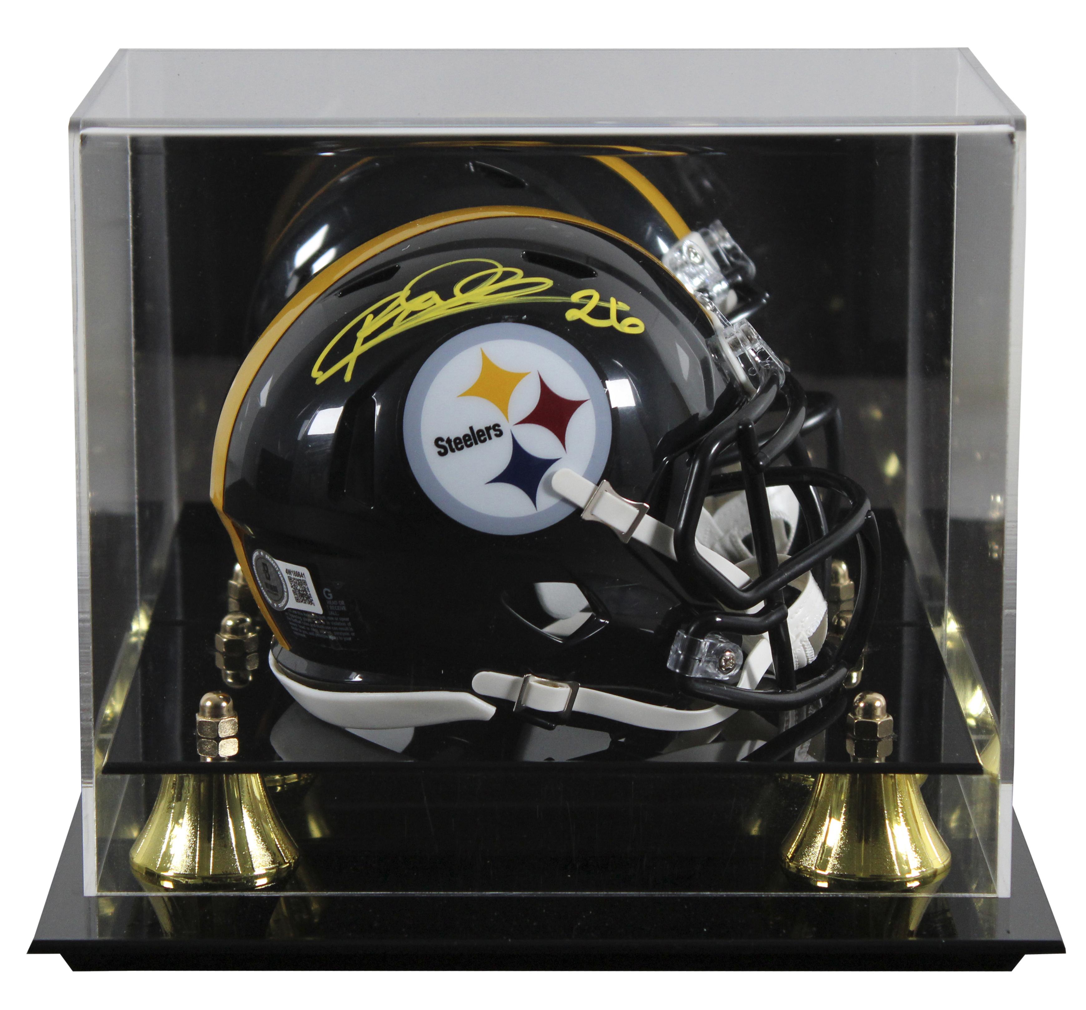 Riddell Pittsburgh Steelers speed mini helmet has been hand-signed by Rod Woodson (HOF). Display case is included as shown.