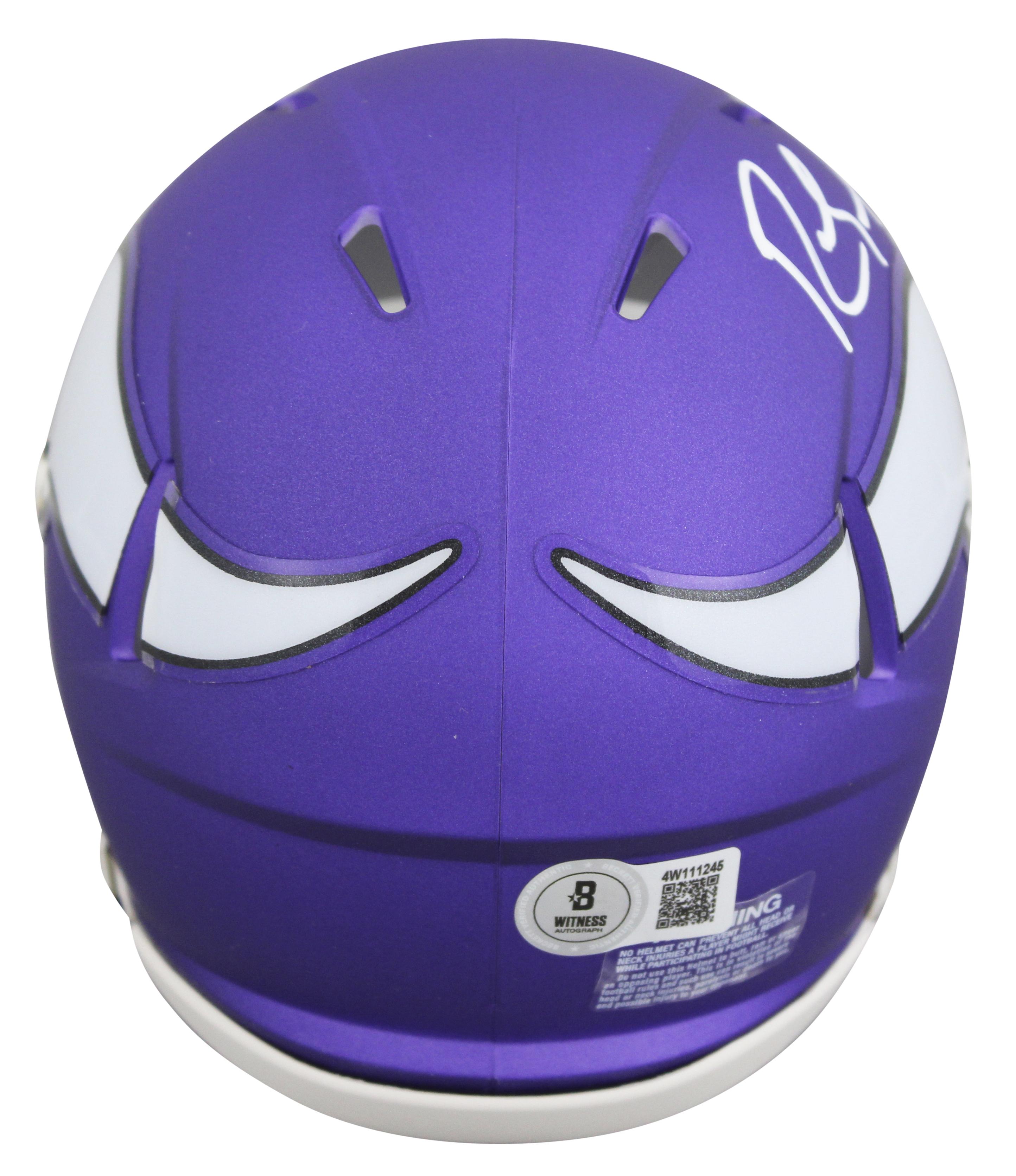 Riddell Minnesota Vikings alternate speed mini helmet has been hand-signed by Randy Moss (HOF). Display case is included as shown.