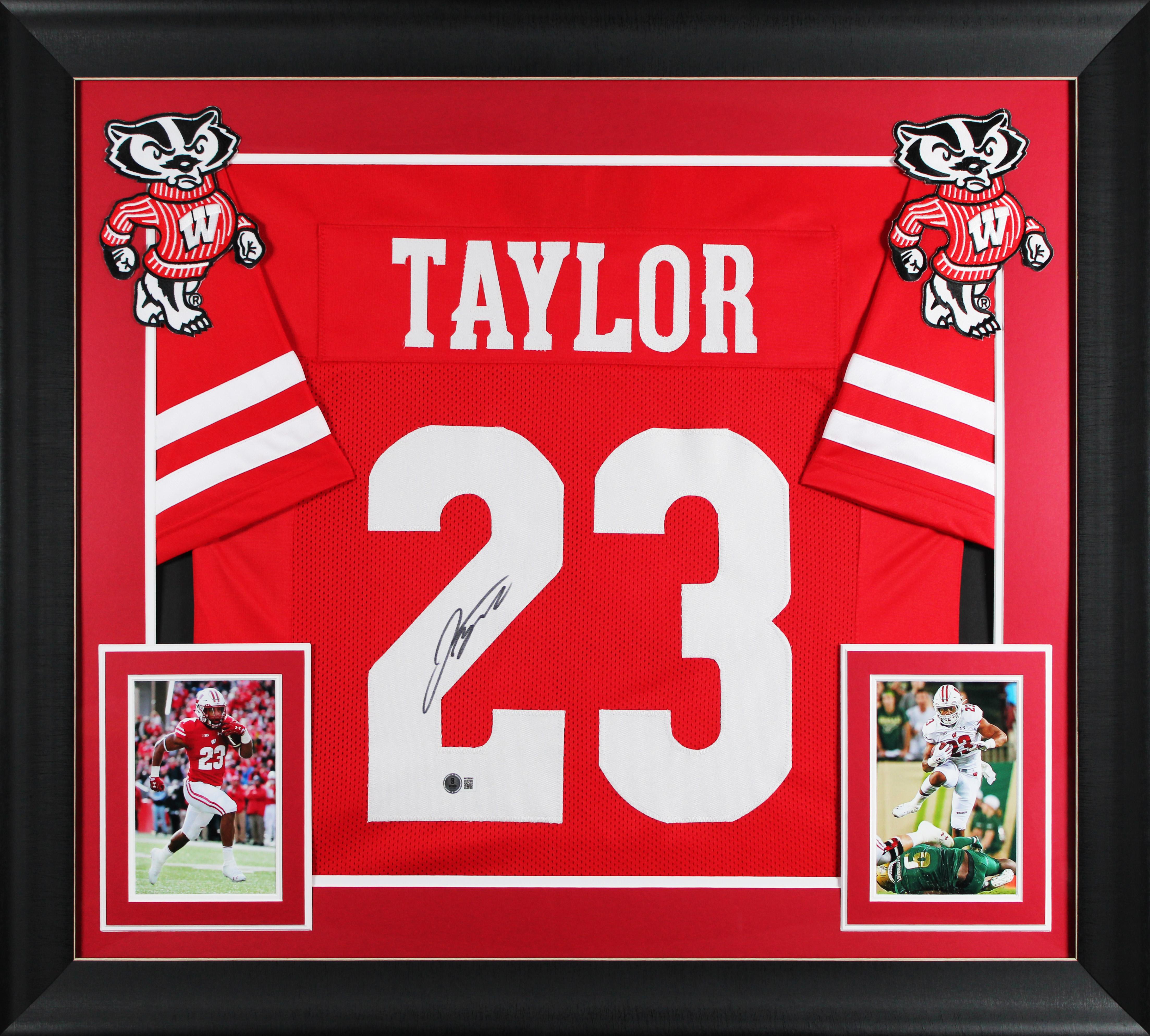 Custom framed display measures approximately 32" x 37” in size and features a jersey that has been hand-signed by Jonathan Taylor.