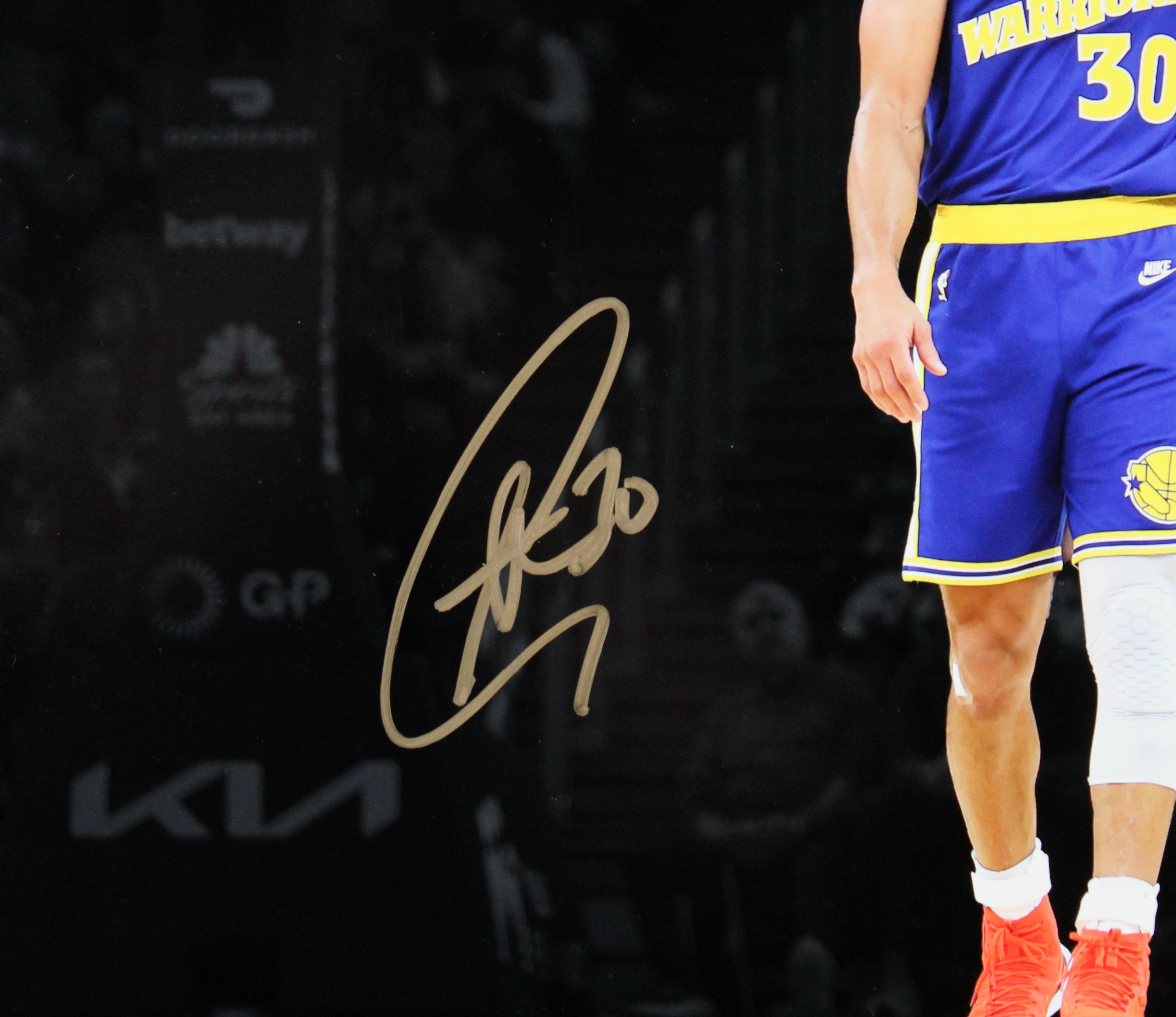 Photo measures approximately 16" x 20" in size and has been hand-signed by Stephen Curry (Golden State Warriors).