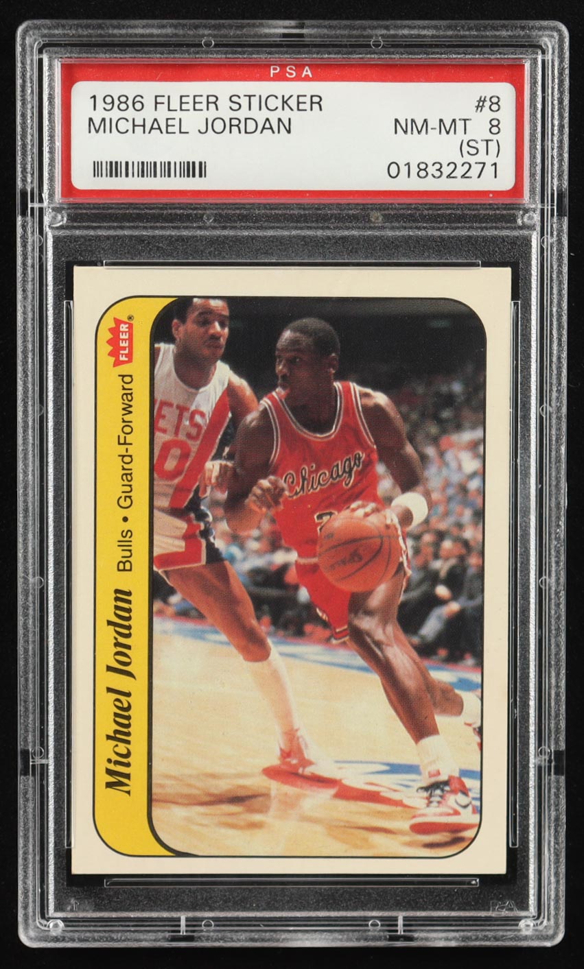 Michael Jordan 1986-87 Fleer Stickers #8 RC (PSA 8) (ST)
