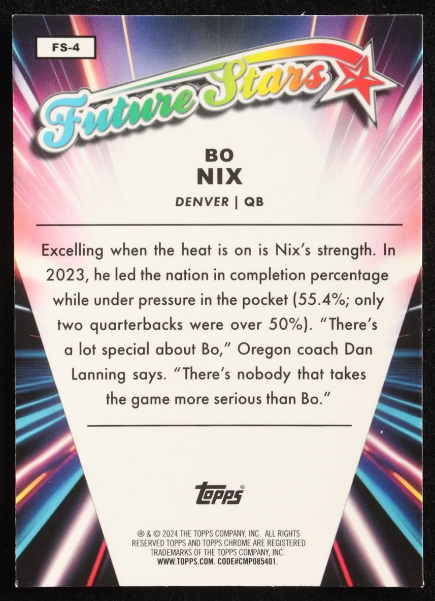 Bo Nix 2024 Topps Chrome Future Stars #FS4 Bo Nix RC