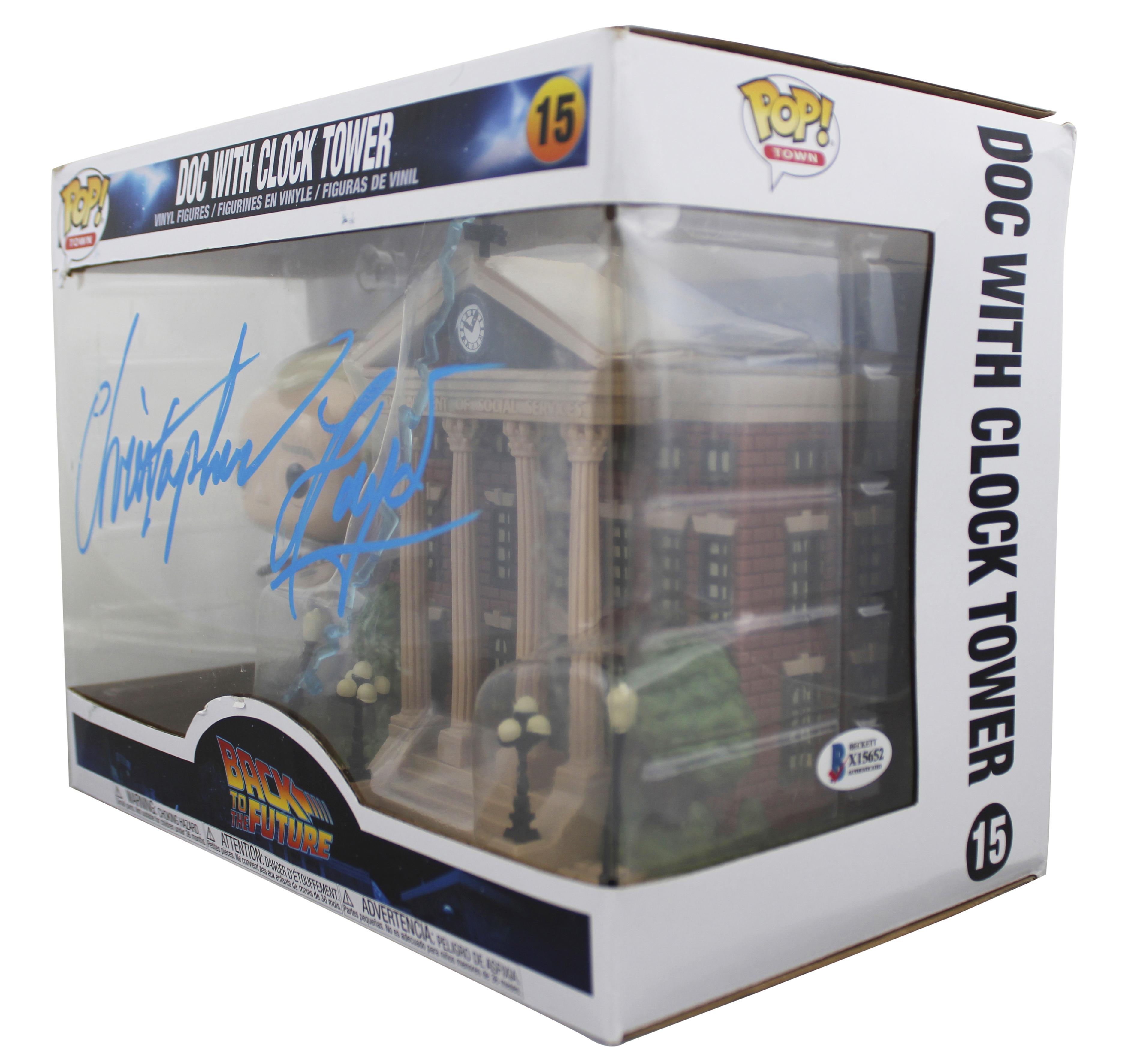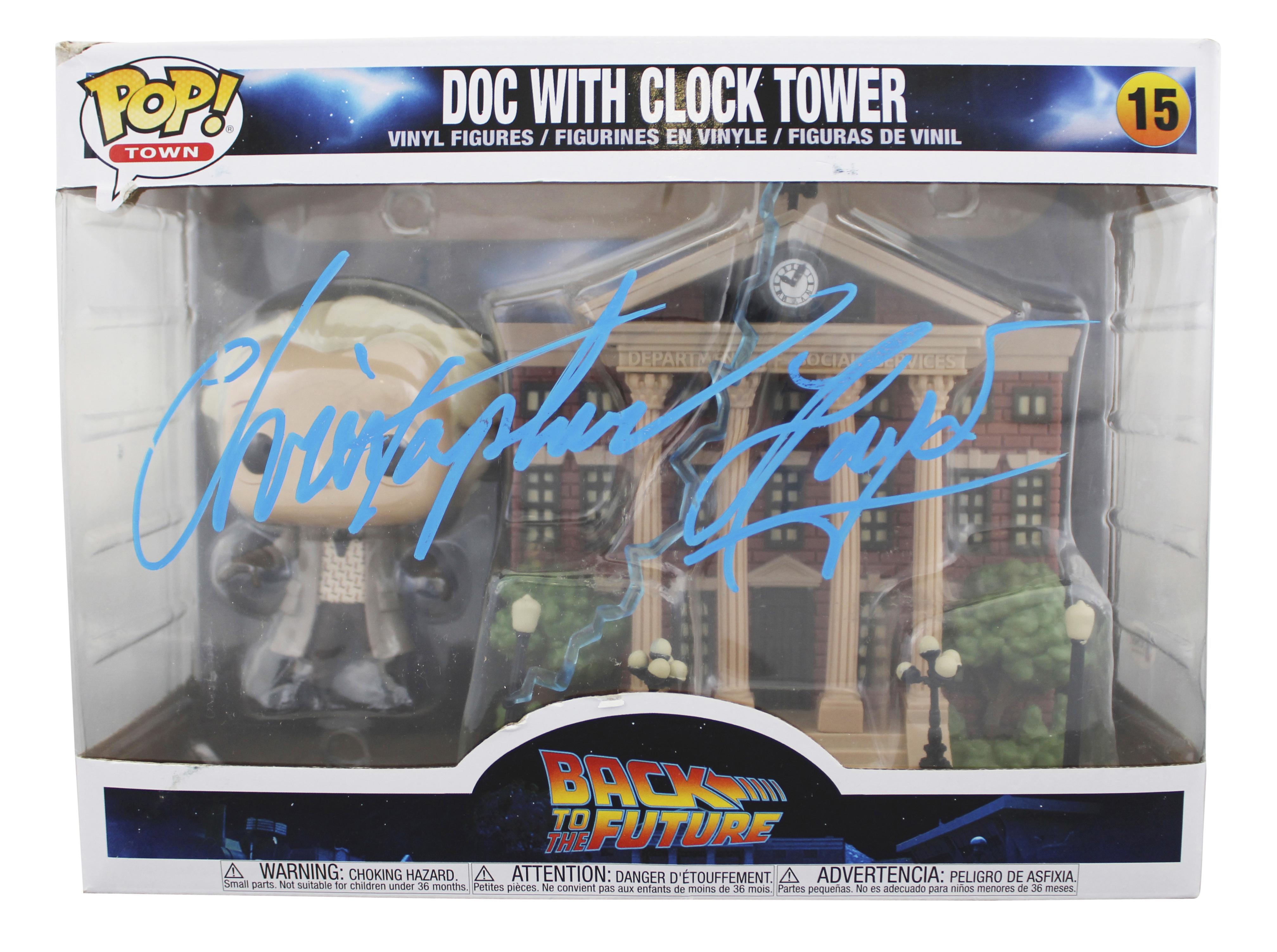 Christopher Lloyd Signed "Back To The Future" #15 Doc With Clock Tower Funko Pop! Vinyl Figure (Beckett)