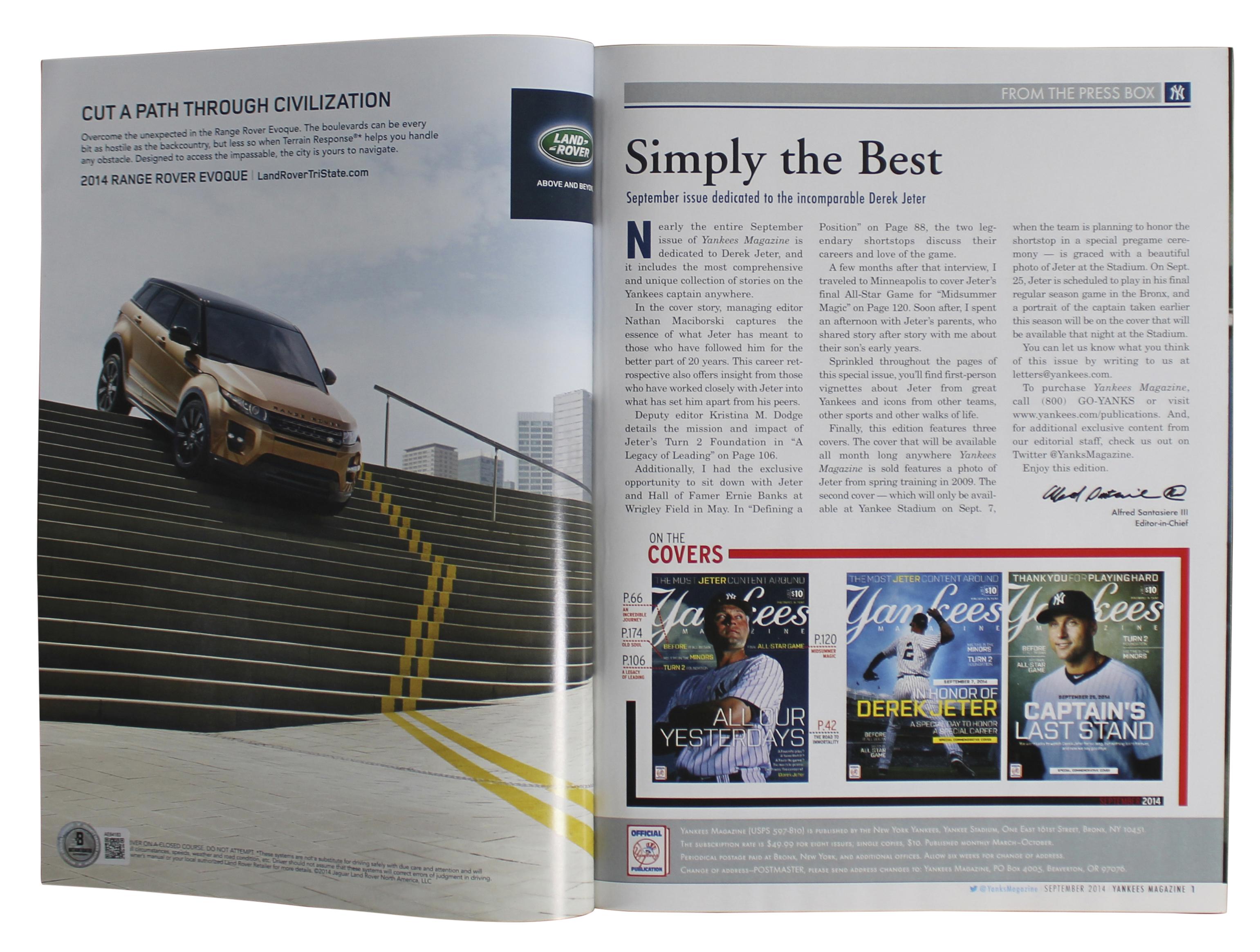 September 2014 New York Yankees Magazine has been hand-signed on the front cover by Derek Jeter (HOF).