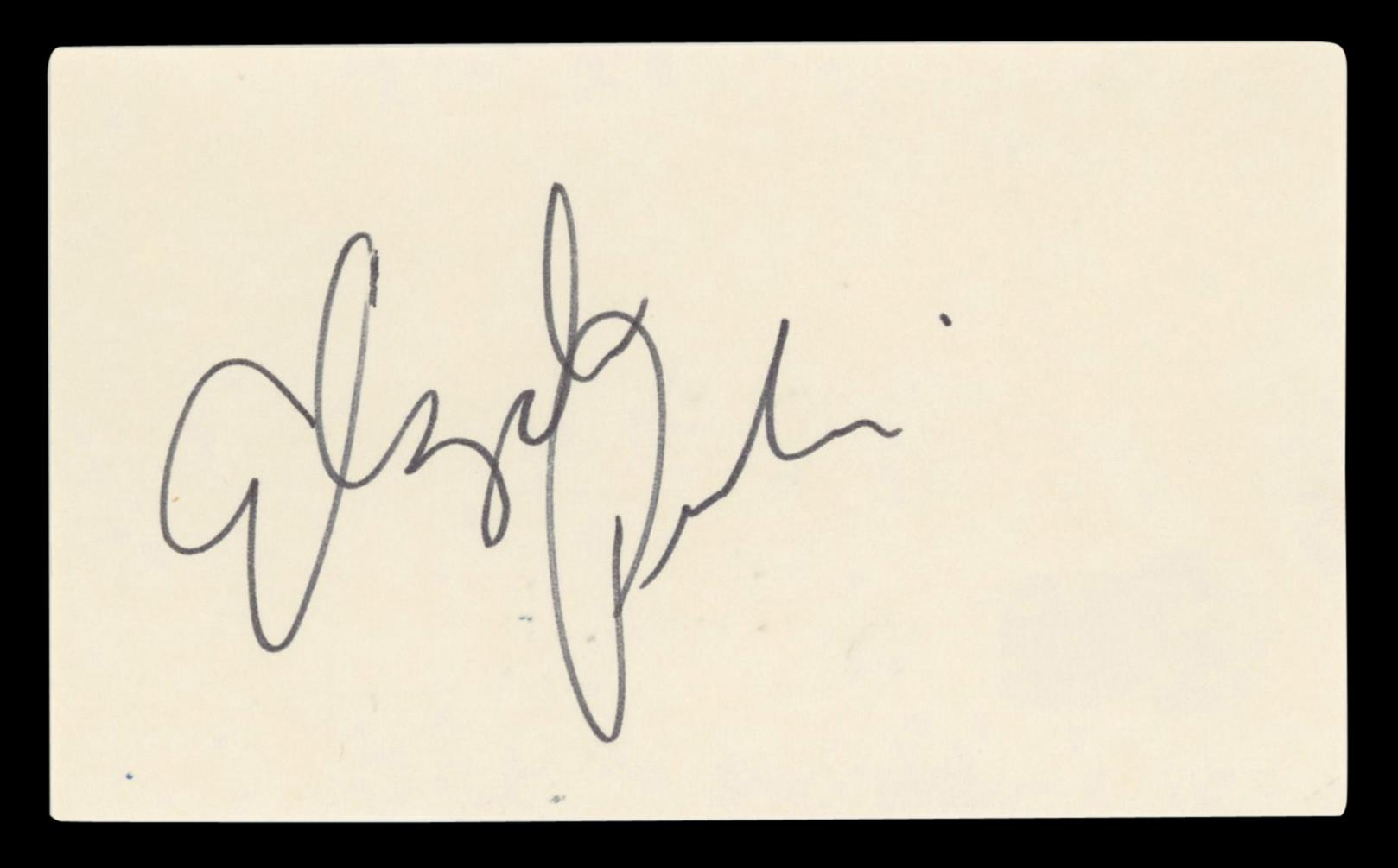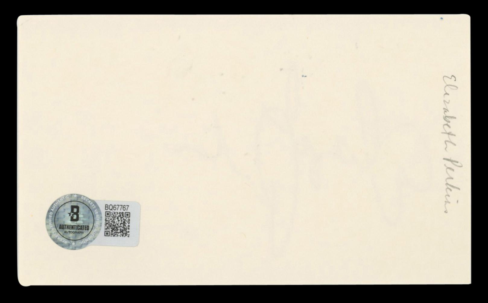 Index card measures approximately 3" x 5" in size and has been hand-signed by Elizabeth Perkins.