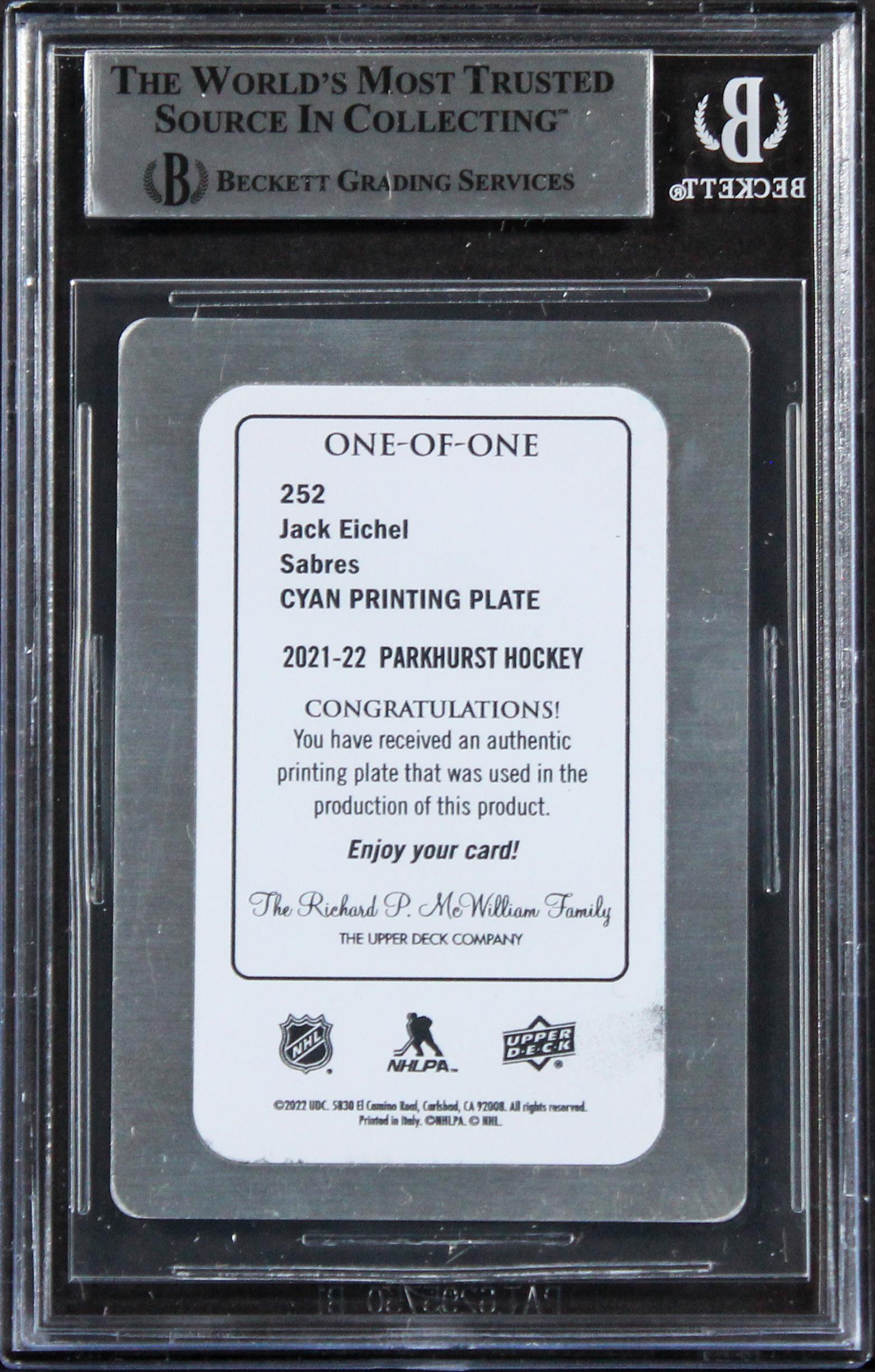 Jack Eichel Signed 2021 Parkhurst Printing Plates Cyan #252 (BGS)