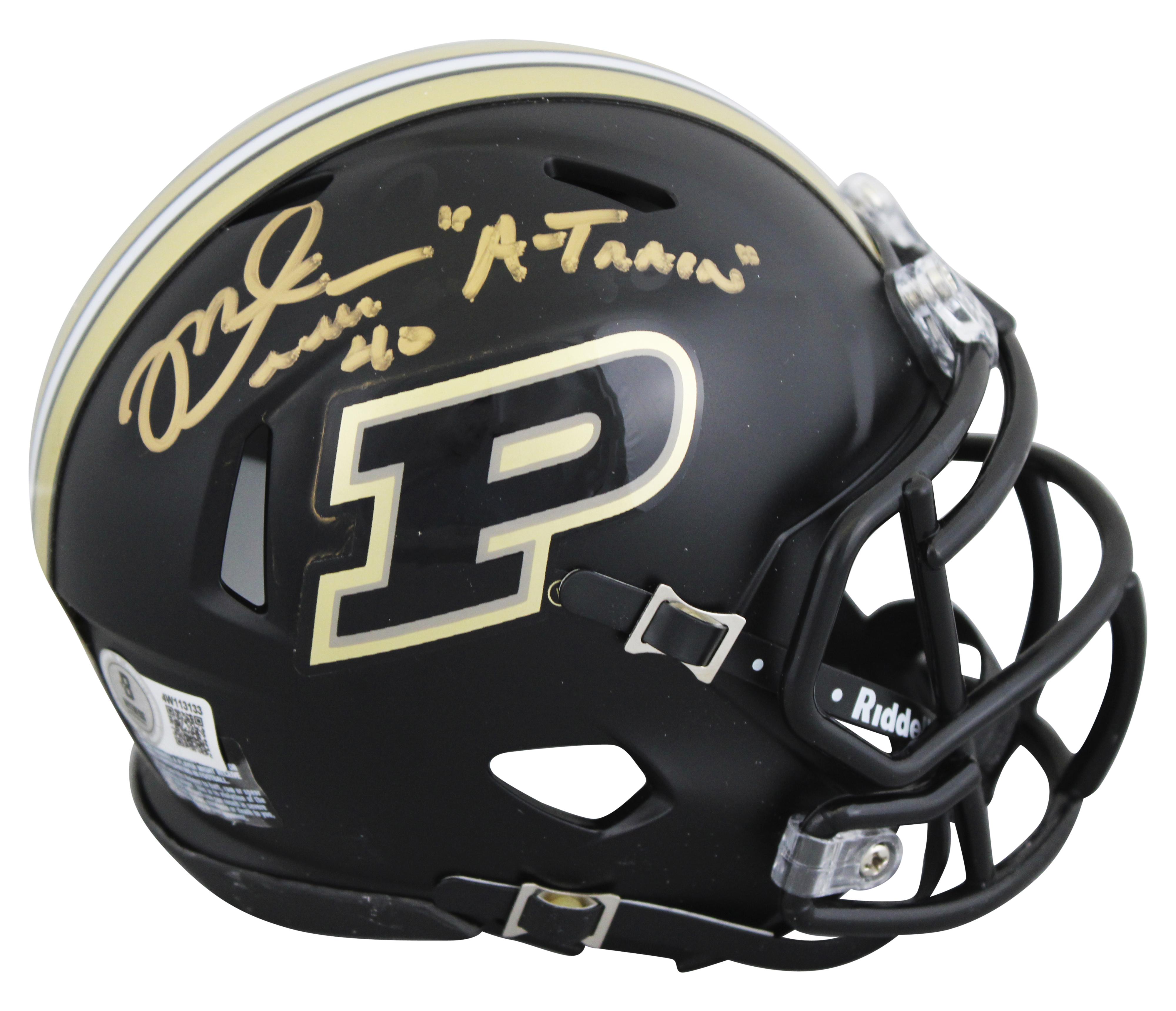Riddell Purdue Boilermakers speed mini helmet has been hand-signed and inscribed by Mike Alstott.