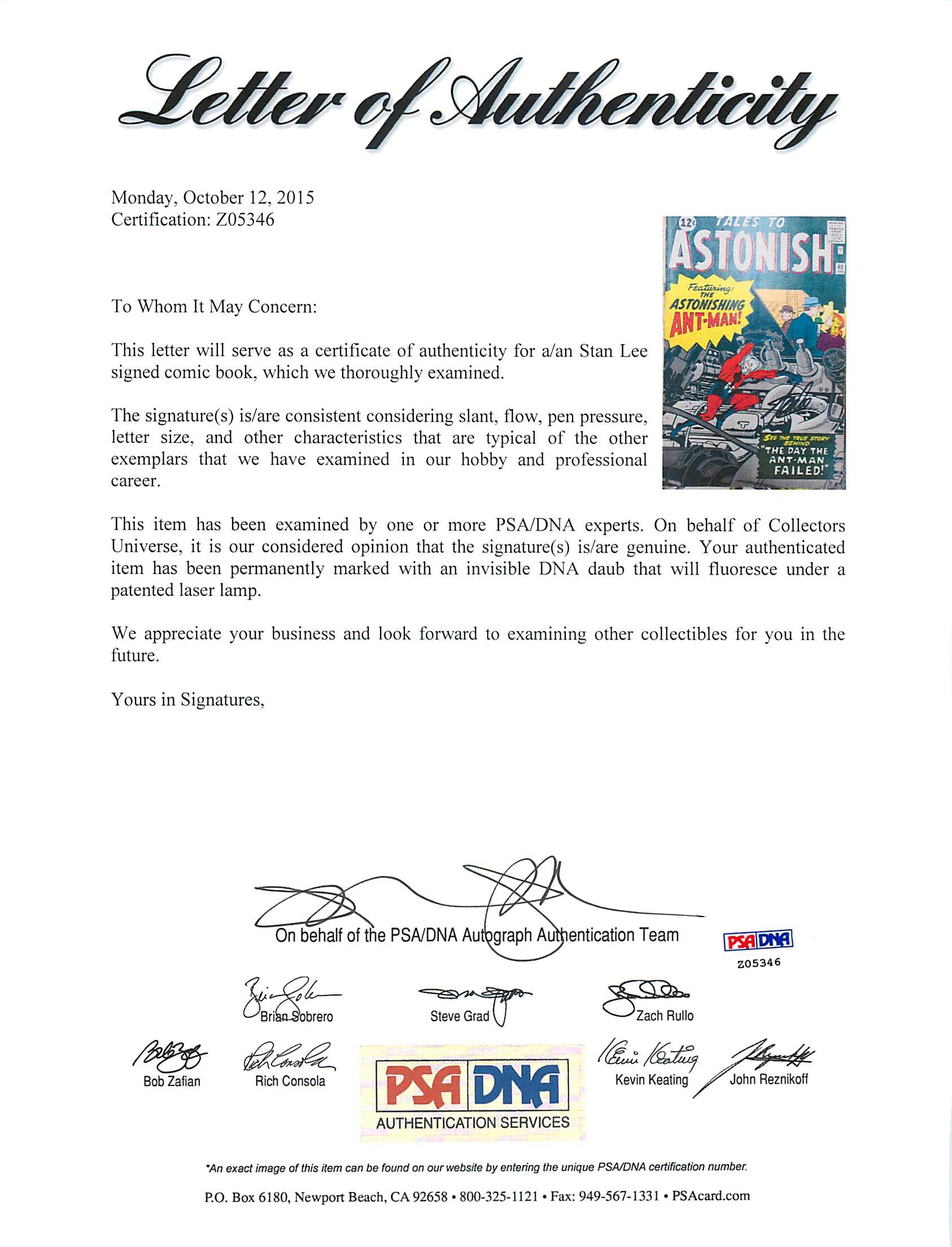 Stan Lee Signed 1962 "Tales to Astonish" Issue #40 Marvel Comic Book (PSA)