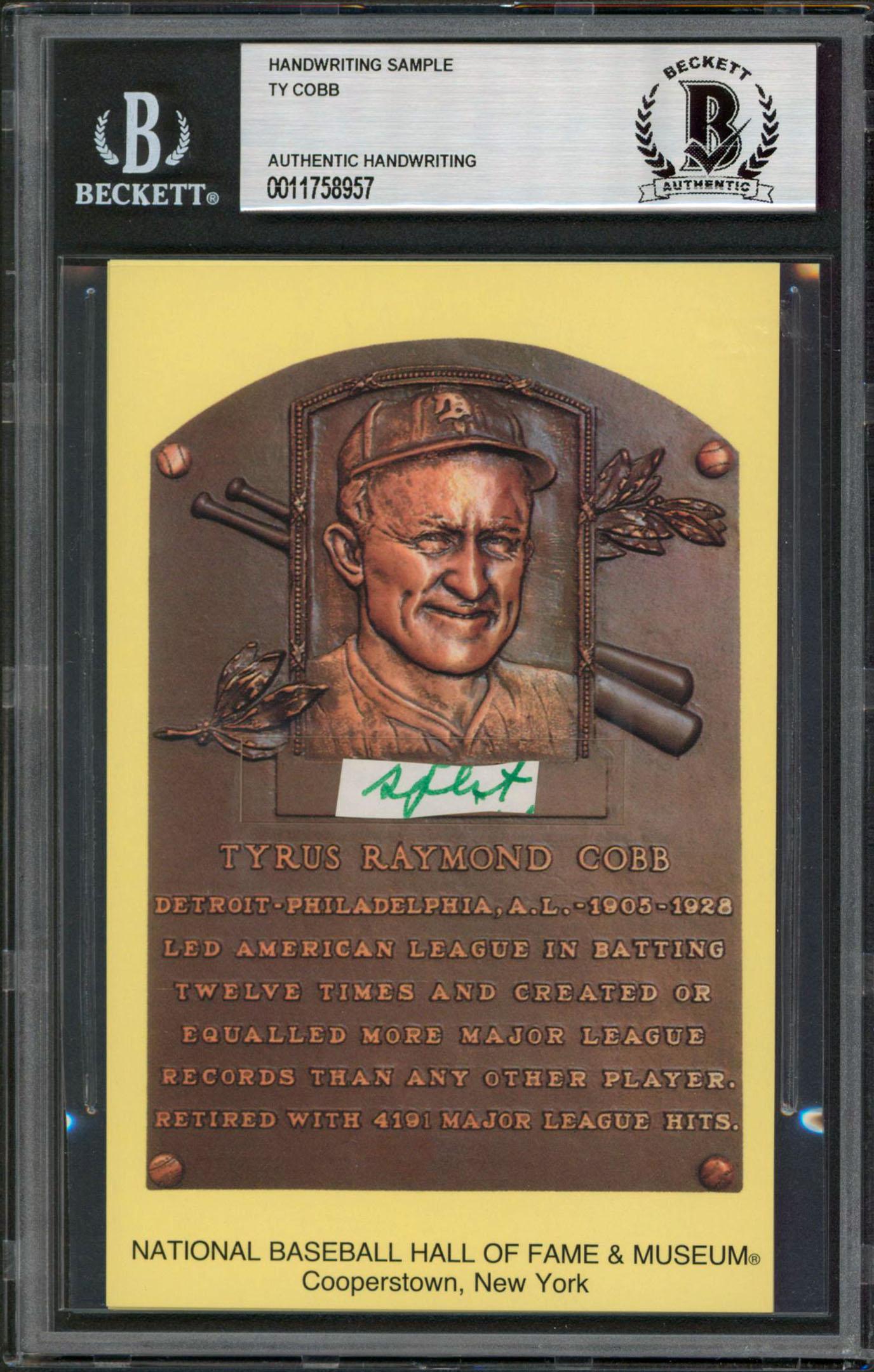 Ty Cobb Hand-Written Cut on Hall of Fame Plaque Postcard (BGS)