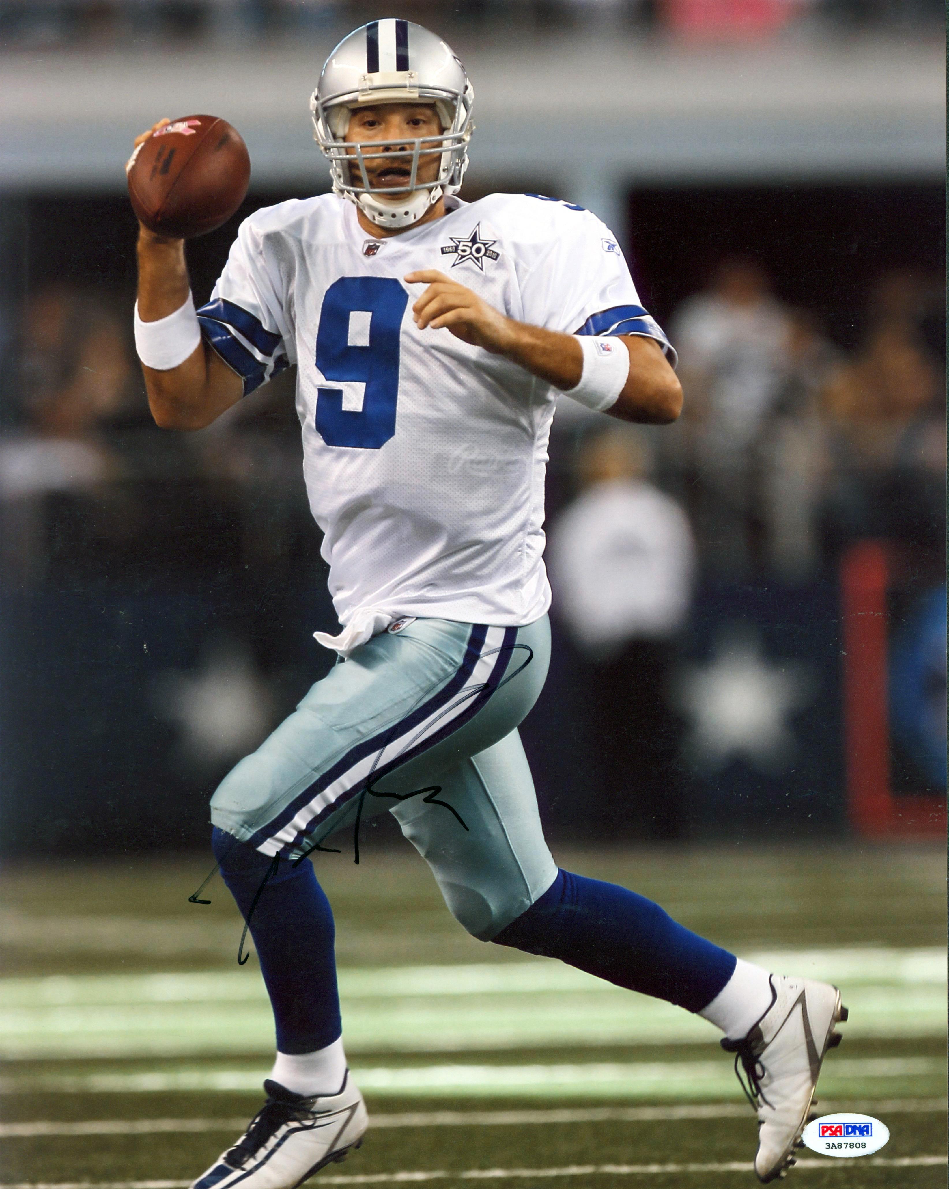 Photo measures 11” x 14” in size and has been hand-signed by Tony Romo (Dallas Cowboys).