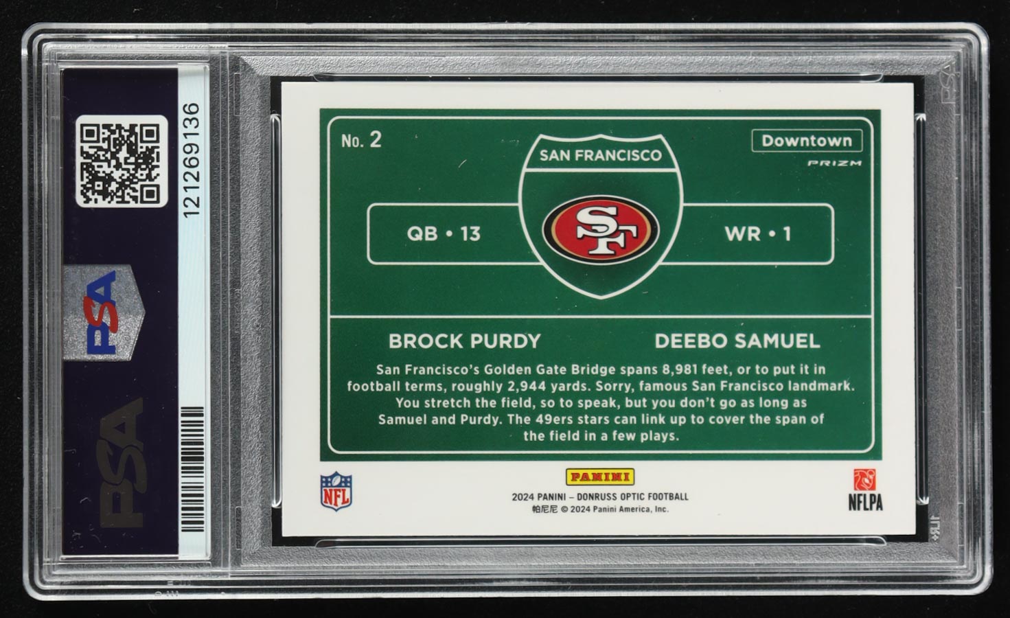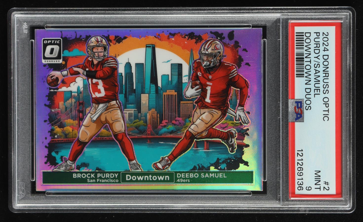 Brock Purdy / Deebo Samuel 2024 Donruss Optic Downtown Duos #2 (PSA 9)