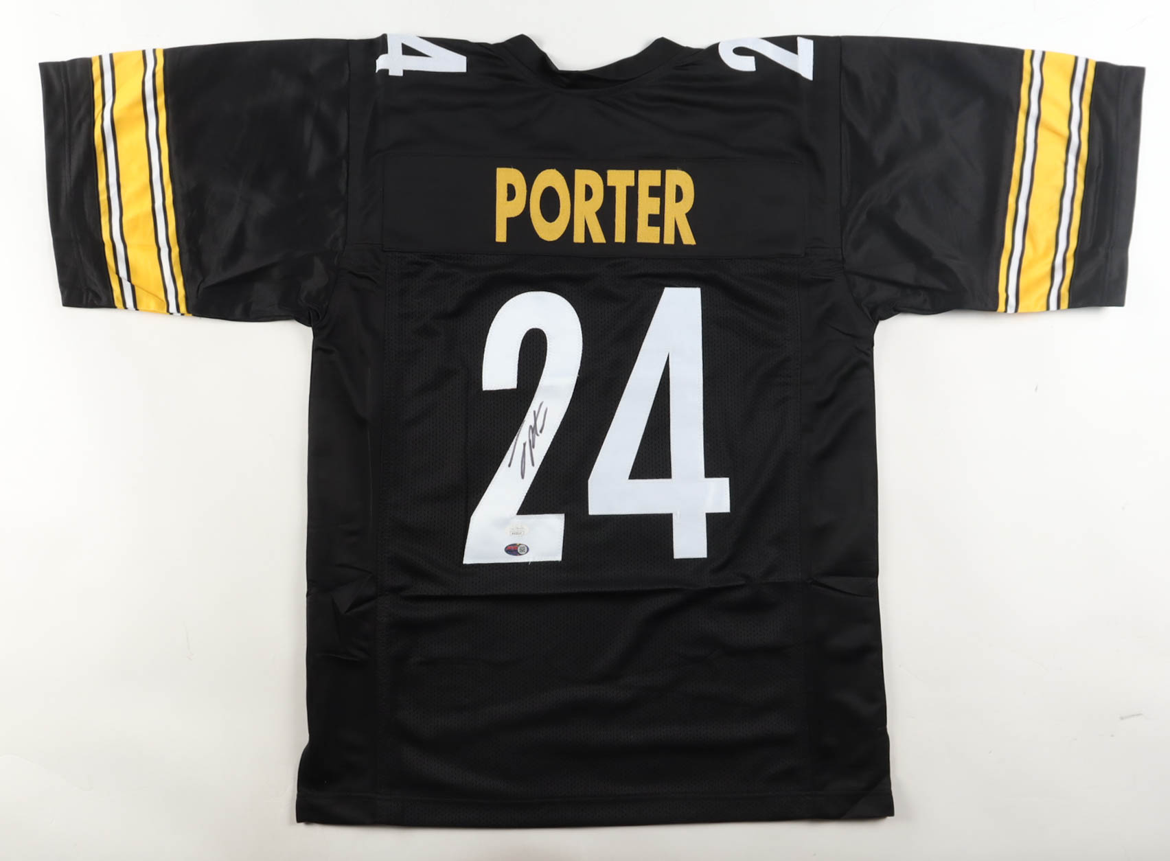Custom jersey with everything sewn on, size XL. Hand-signed by Joey Porter Jr.